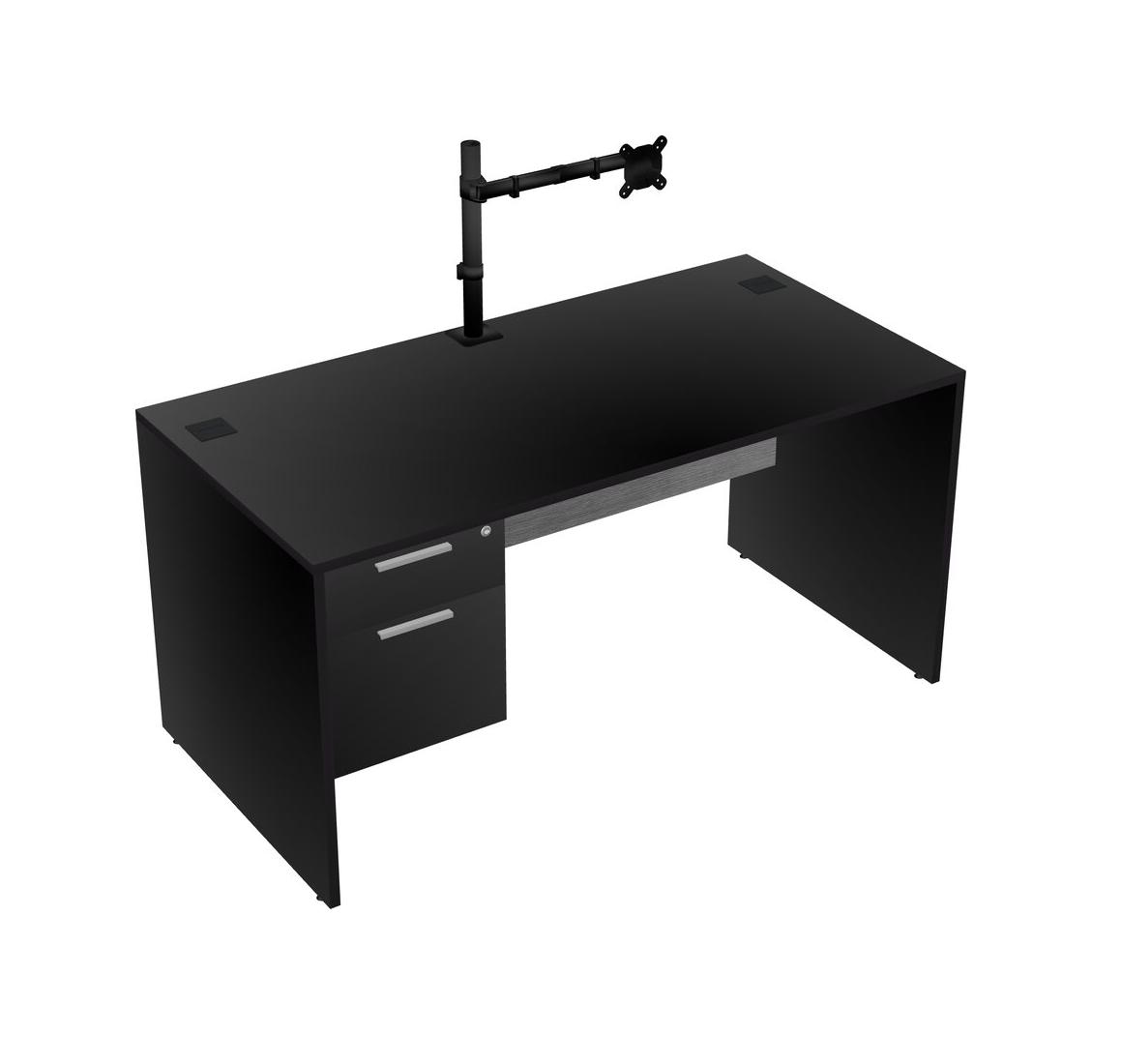 Bureau Rectangulaire Noir Avec Tiroirs Suspendus Noirs Et Bras D'écran Noir (bras Simple)