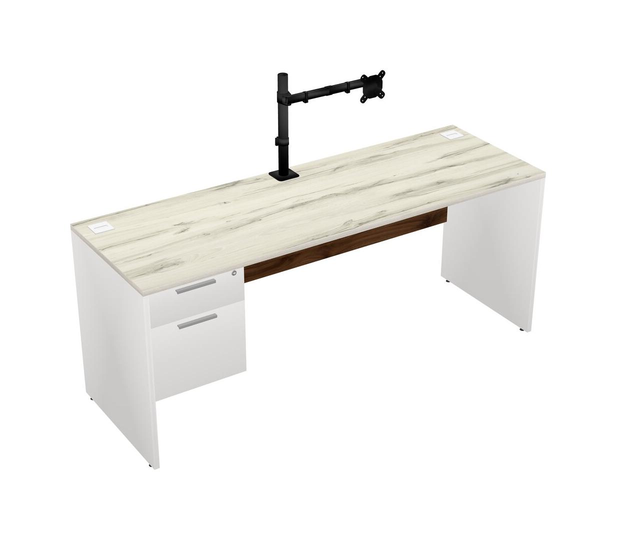 Bureau Rectangulaire Heinne Holz Avec Tiroirs Suspendus Blancs Et Bras D'écran Noir (bras Simple)