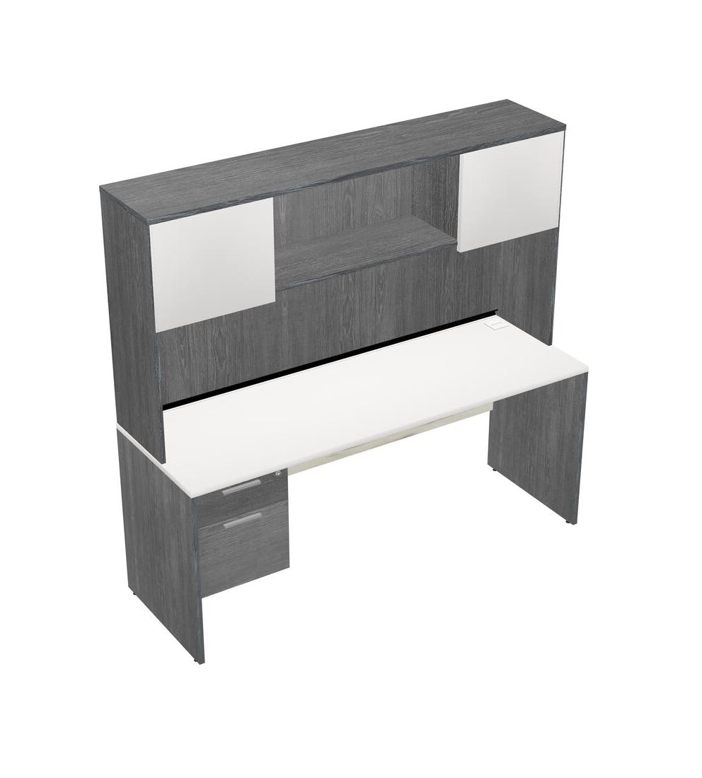 Bureau Rectangulaire Blanc Avec Tiroirs Suspendus Gris Et Bahut Gris