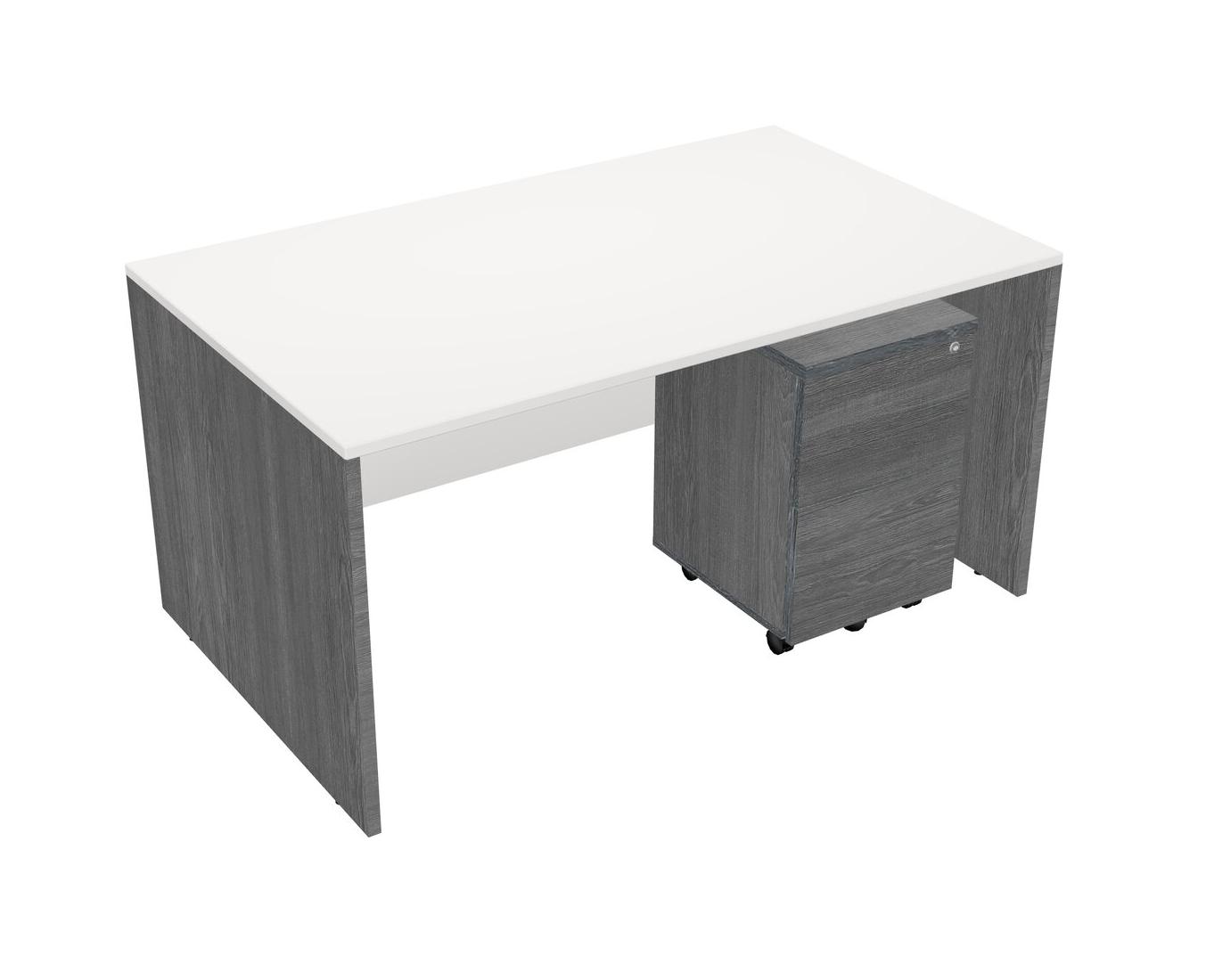 Bureau Rectangulaire Blanc Avec Tiroirs Mobiles En Bois Gris