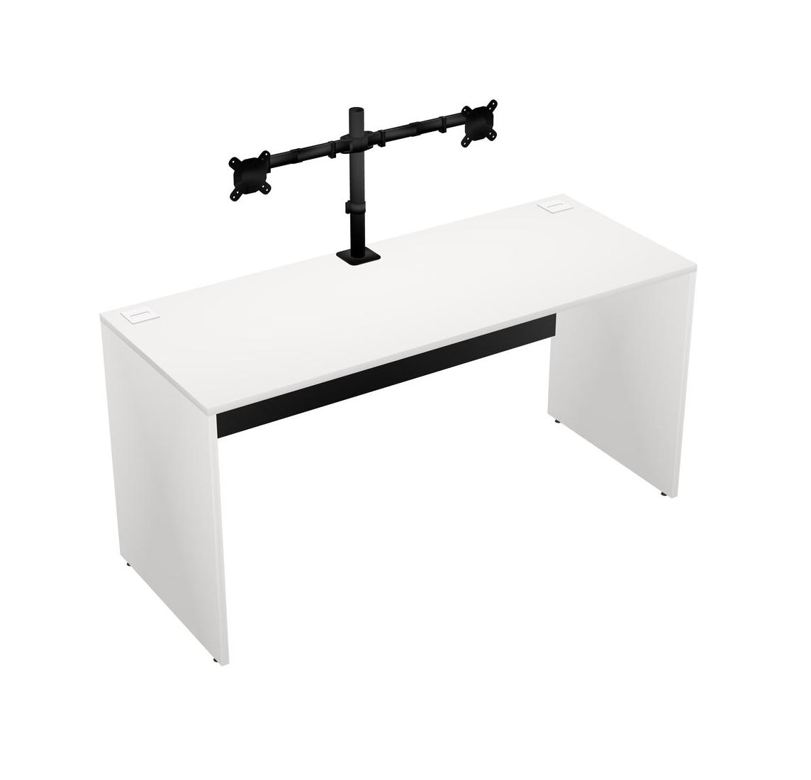 Bureau Rectangulaire Blanc Avec Bras D'écran Noir (bras Doubles)