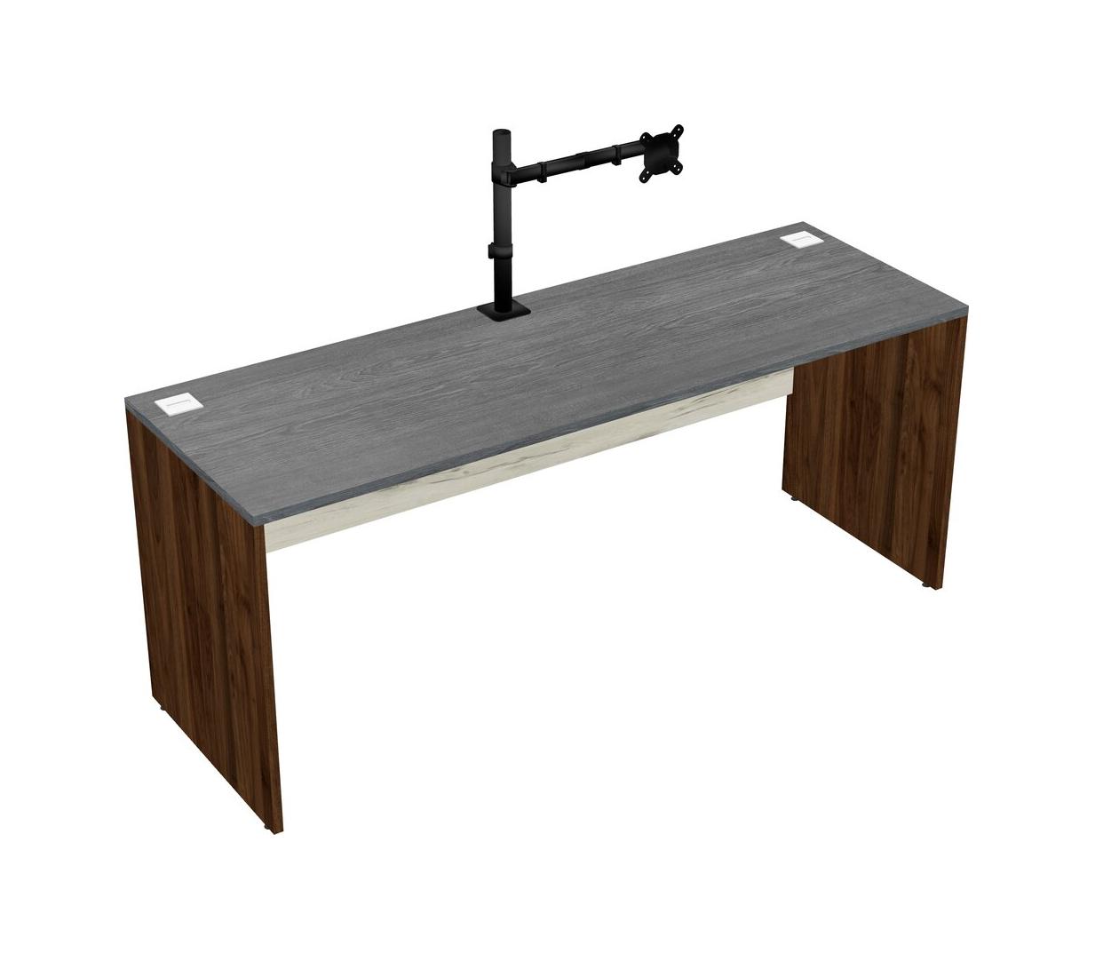 Bureau Rectangulaire Gris Avec Bras D'écran Noir (bras Simple)