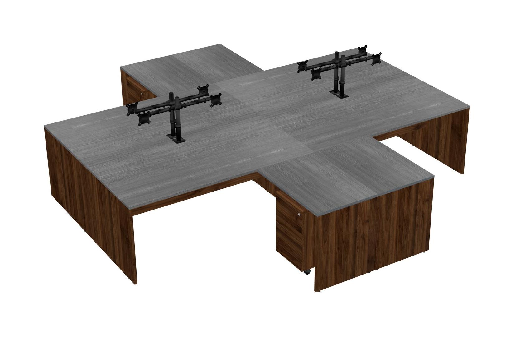 Bureaux Gris En Forme De L Avec Bras D'écran Noir (bras Doubles)