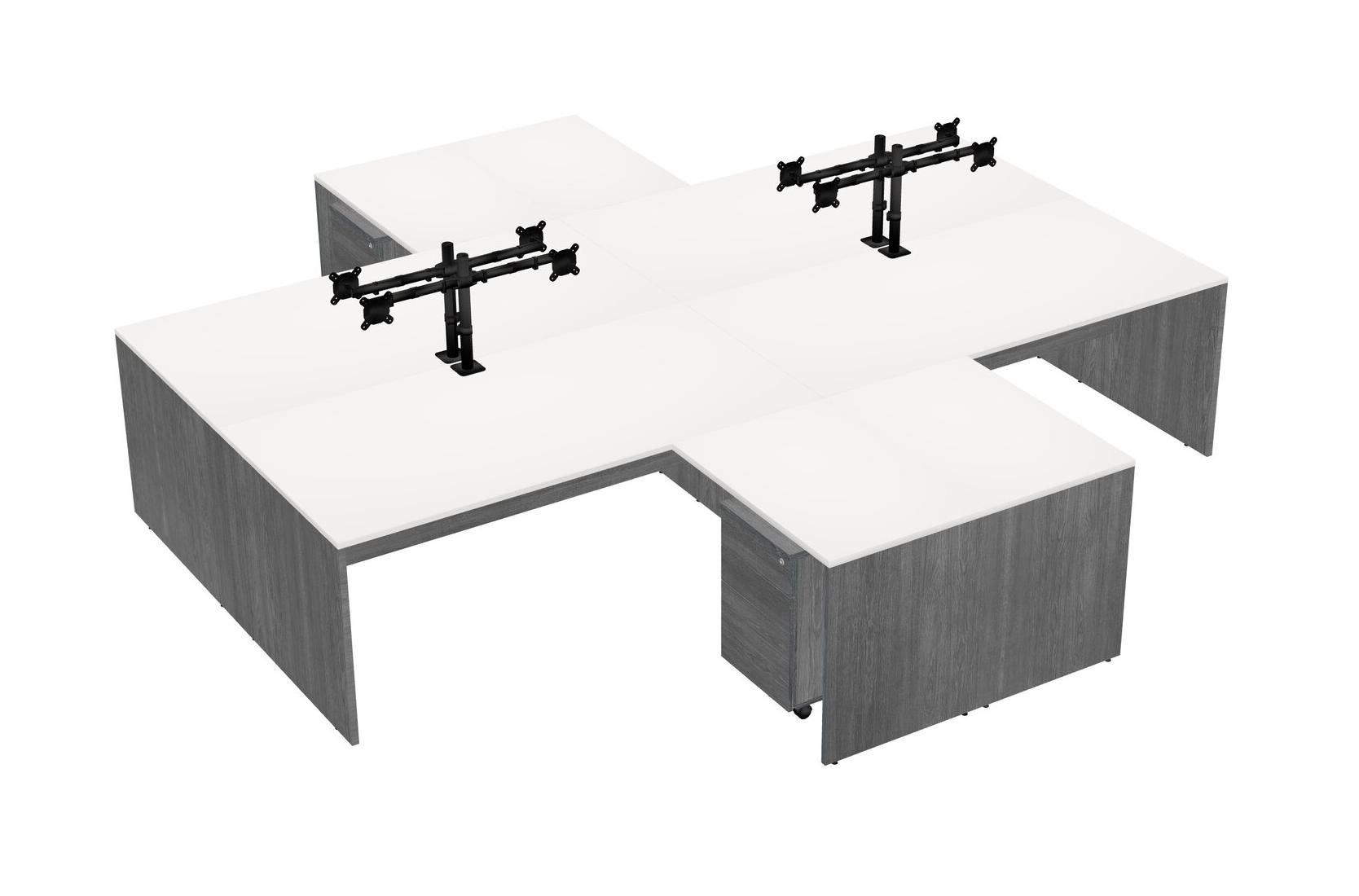 Bureaux Blancs En Forme De L Avec Bras D'écran Noir (bras Doubles)