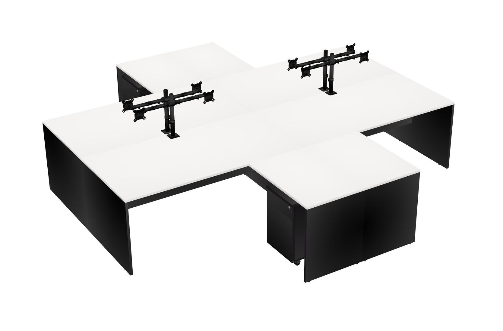 Bureaux Blancs En Forme De L Avec Bras D'écran Noir (bras Doubles)