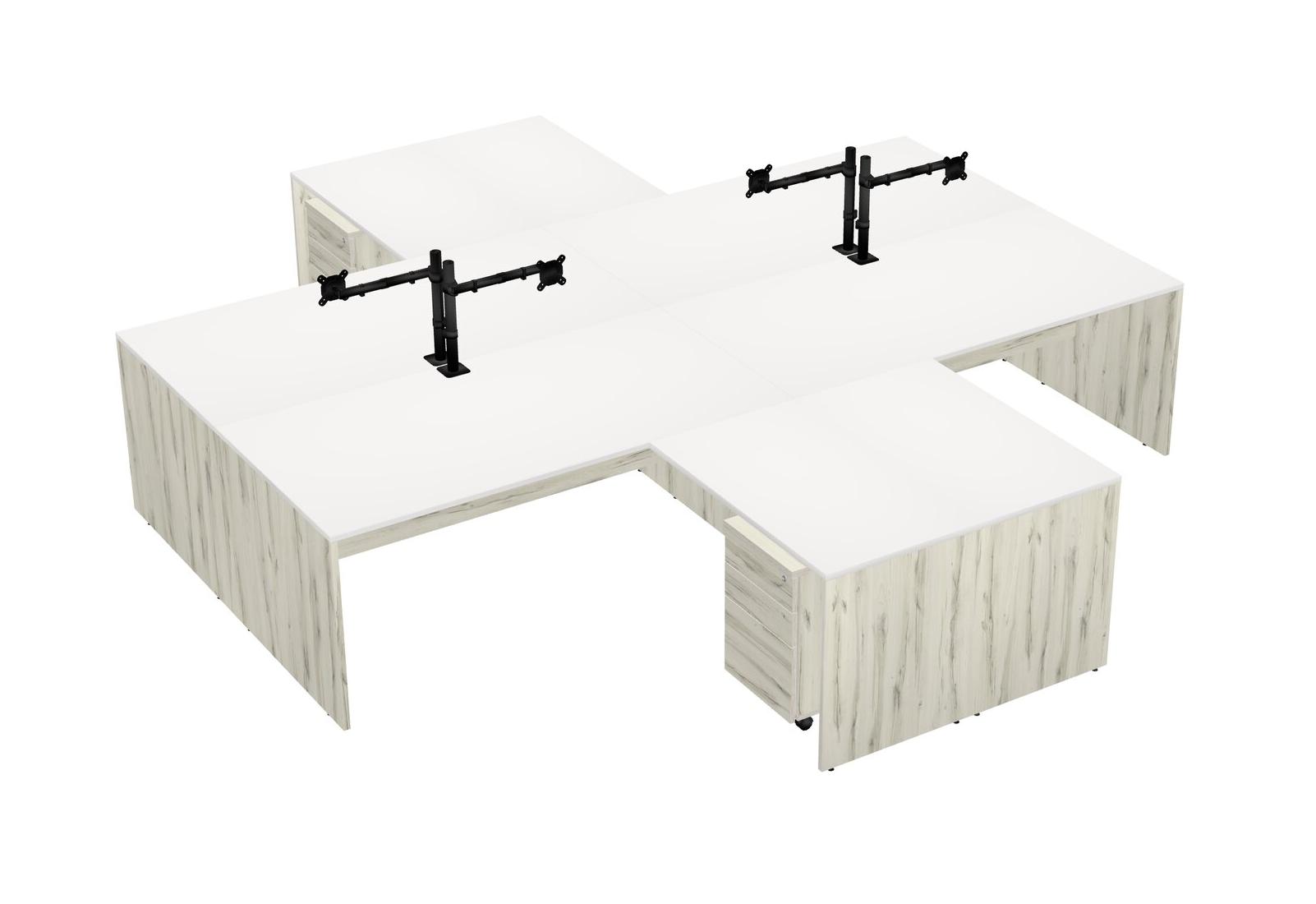 Bureaux Blancs En L Avec Bras D'écran Noir (bras Simple)