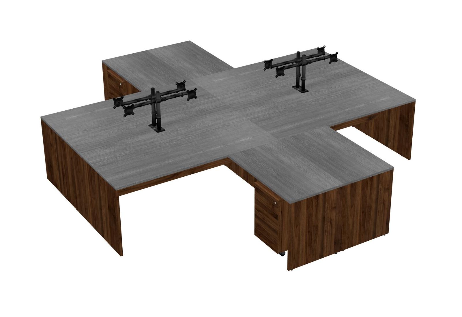 Bureaux Gris En Forme De L Avec Bras D'écran Noir (bras Doubles)