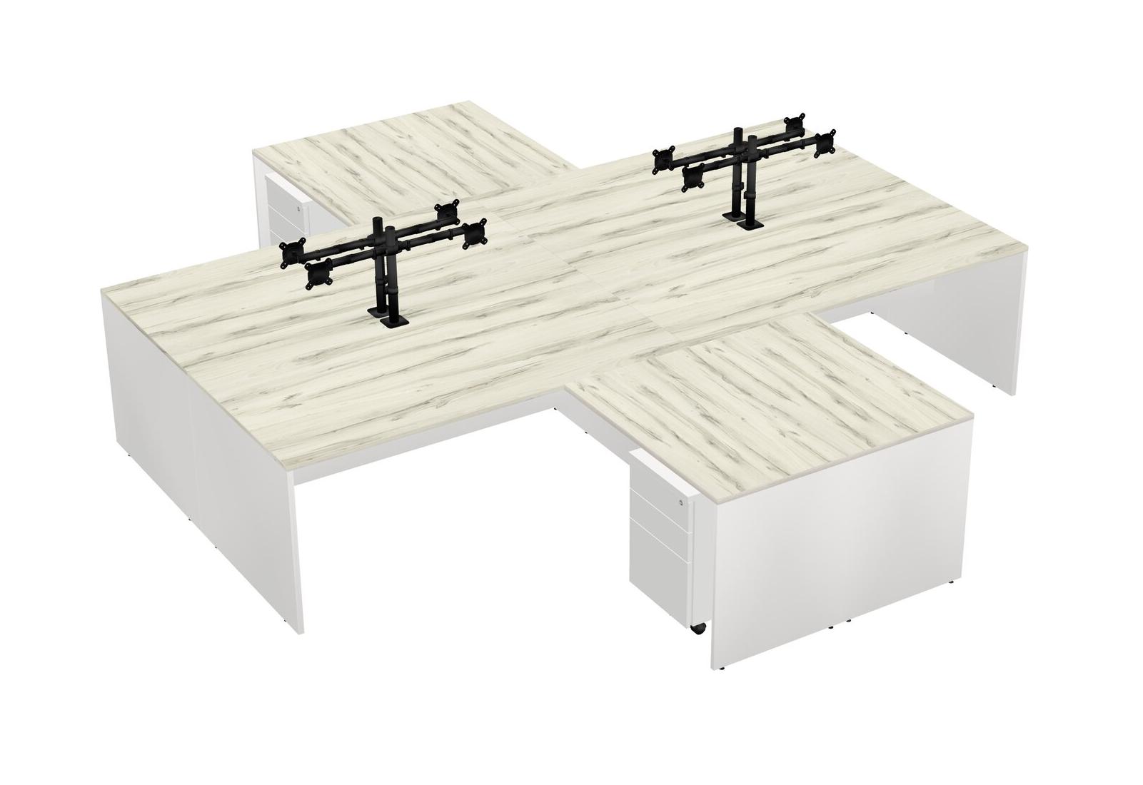 Bureaux Heinne Holz Quad En L Avec Bras D'écran Noir (bras Doubles)