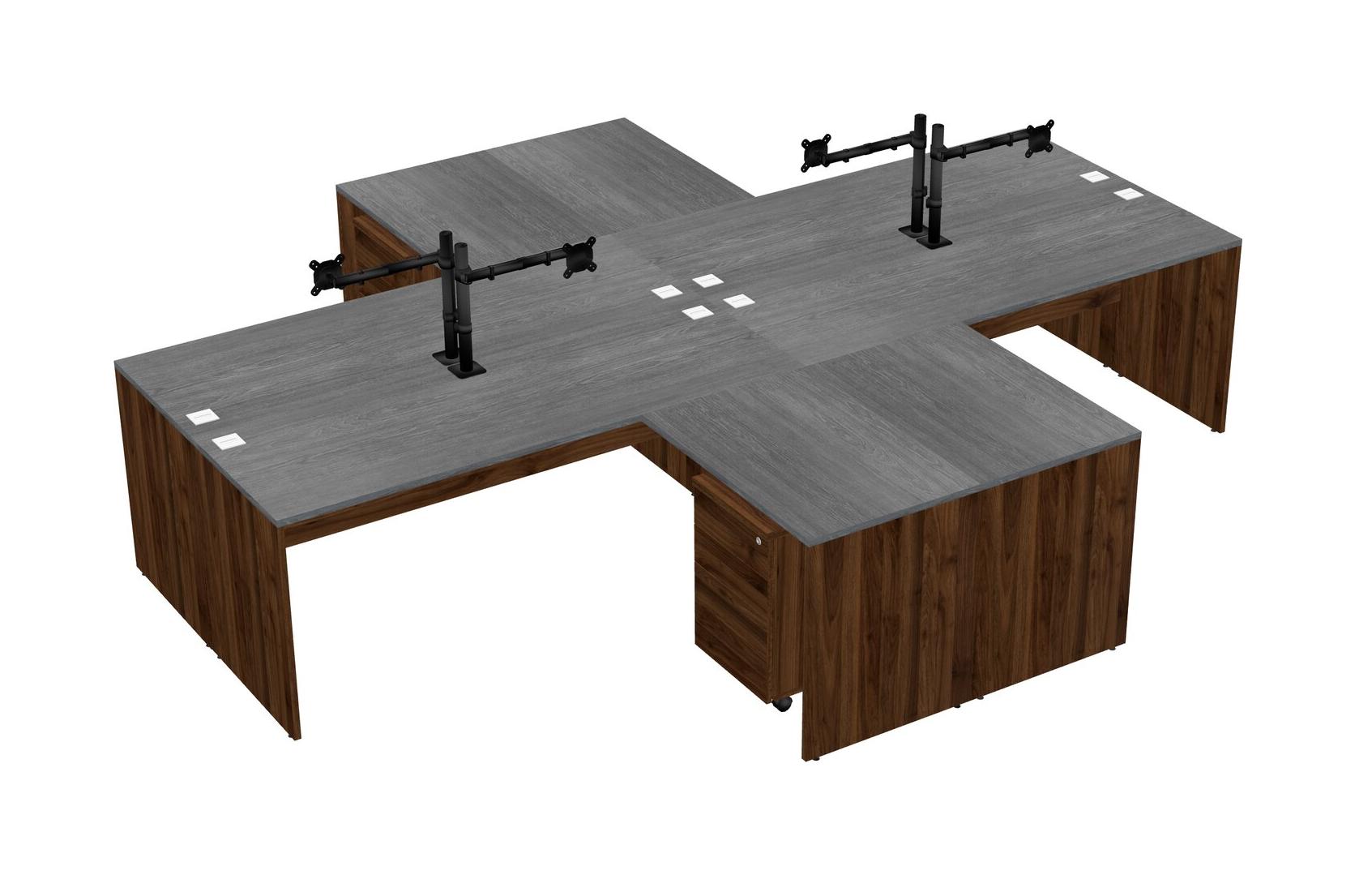 Bureaux Gris En L Avec Bras D'écran Noir (bras Simple)
