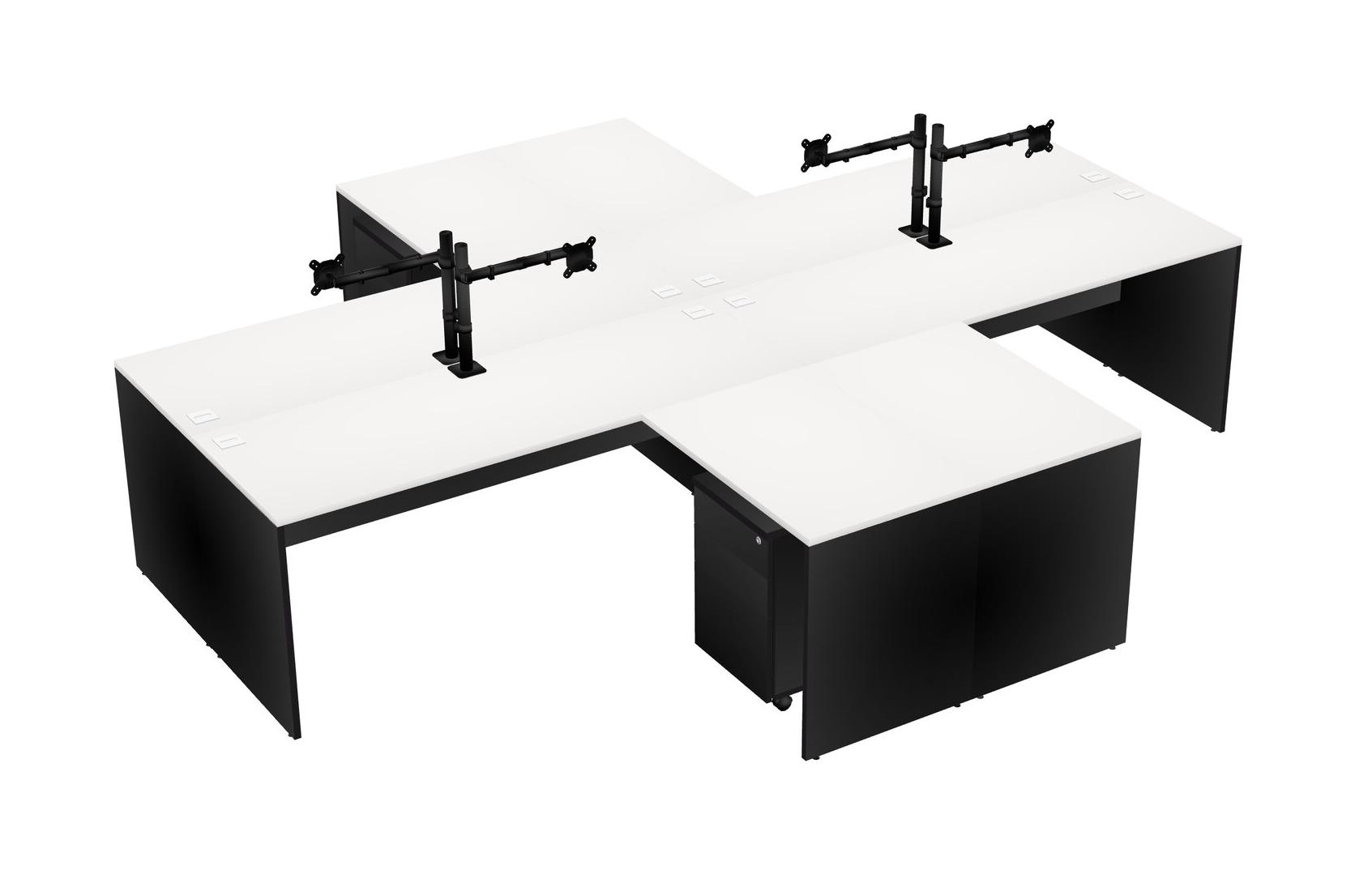 Bureaux Blancs En L Avec Bras D'écran Noir (bras Simple)