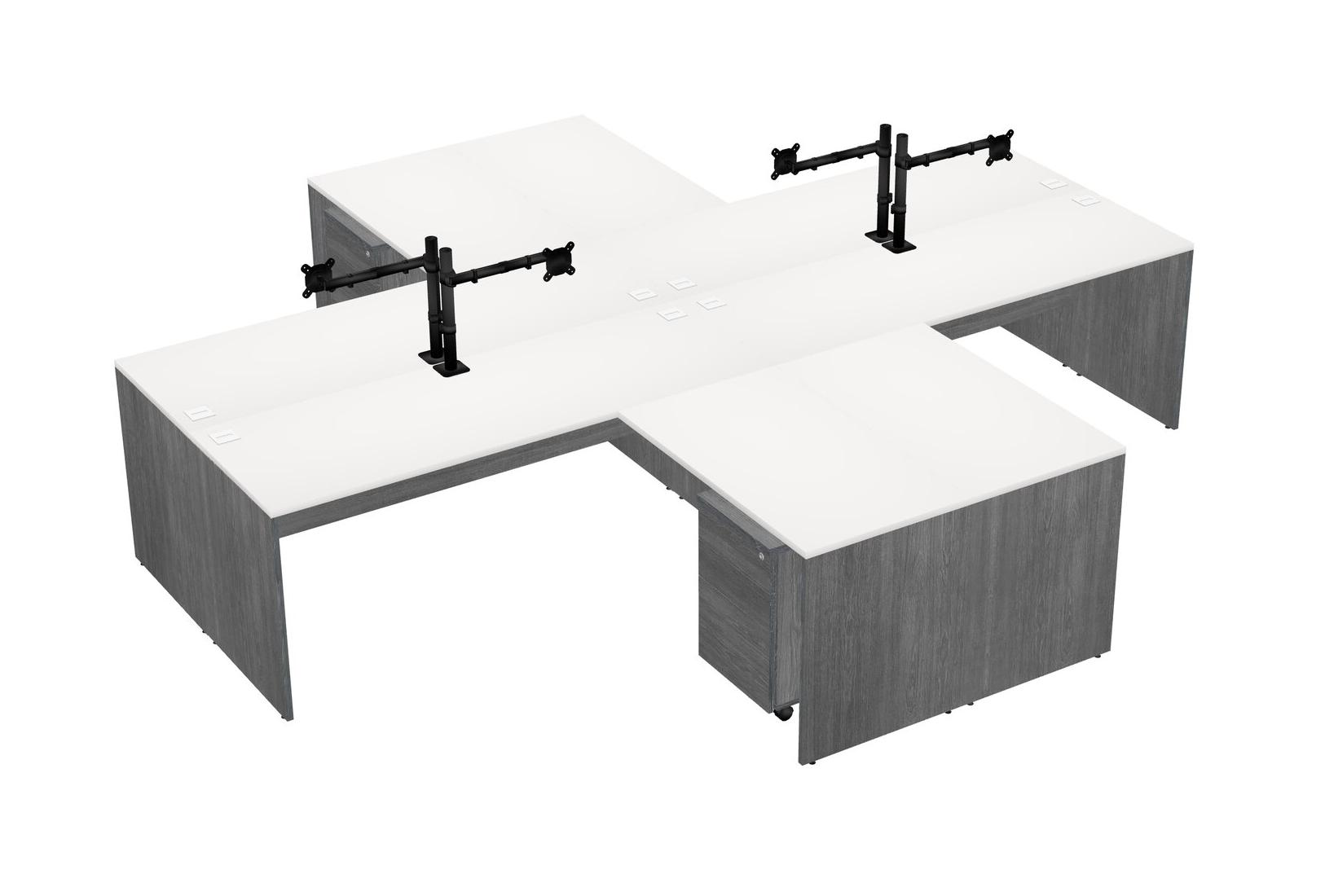 Bureaux Blancs En L Avec Bras D'écran Noir (bras Simple)