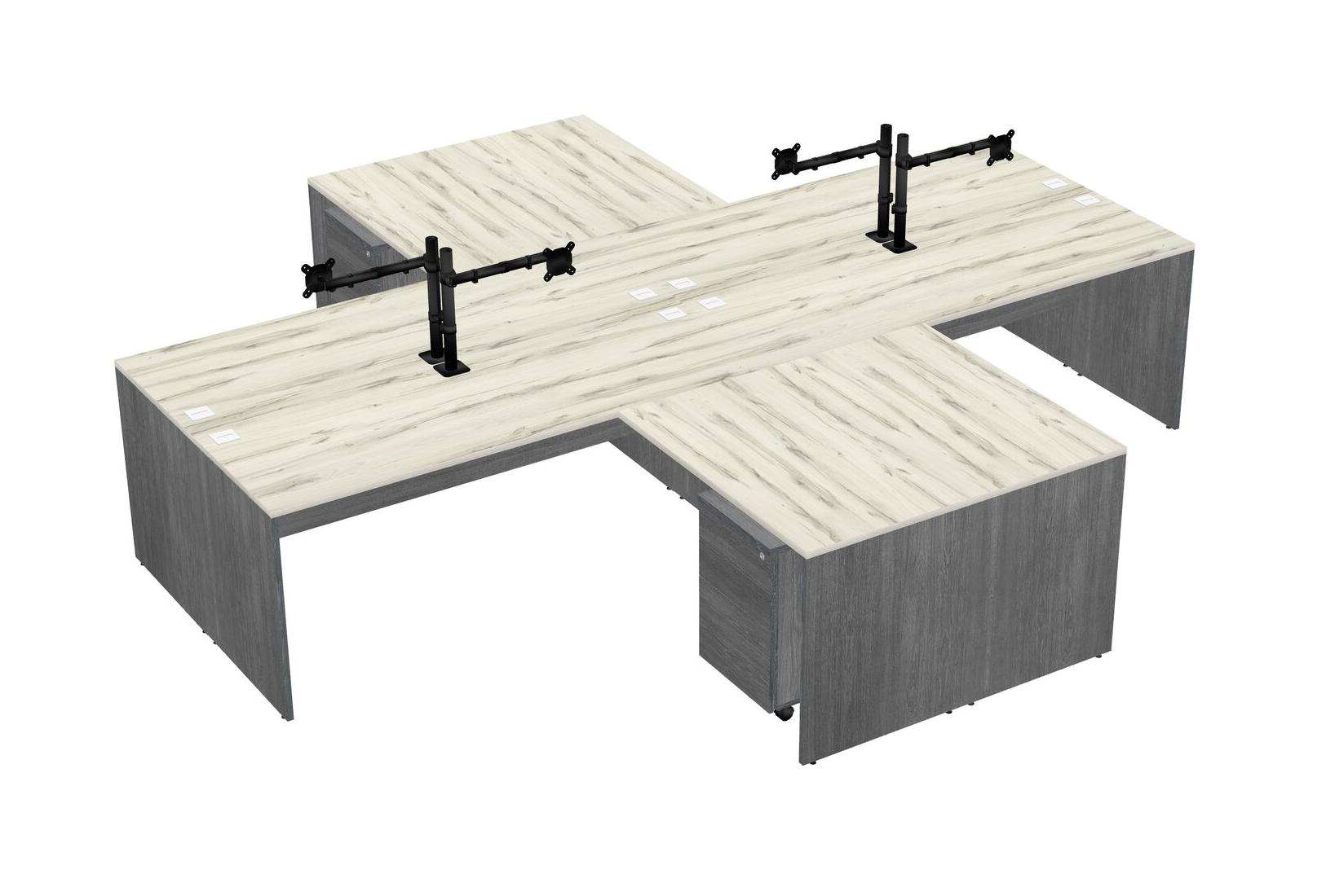 Bureaux Heinne Holz Quad En L Avec Bras D'écran Noir (bras Simple)