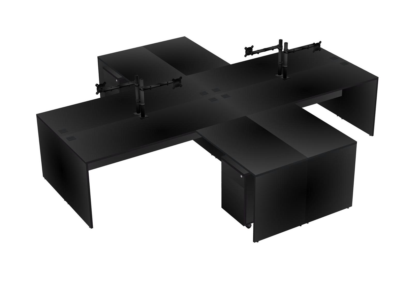 Bureaux Noirs En Forme De L Avec Bras D'écran Noir (bras Simple)