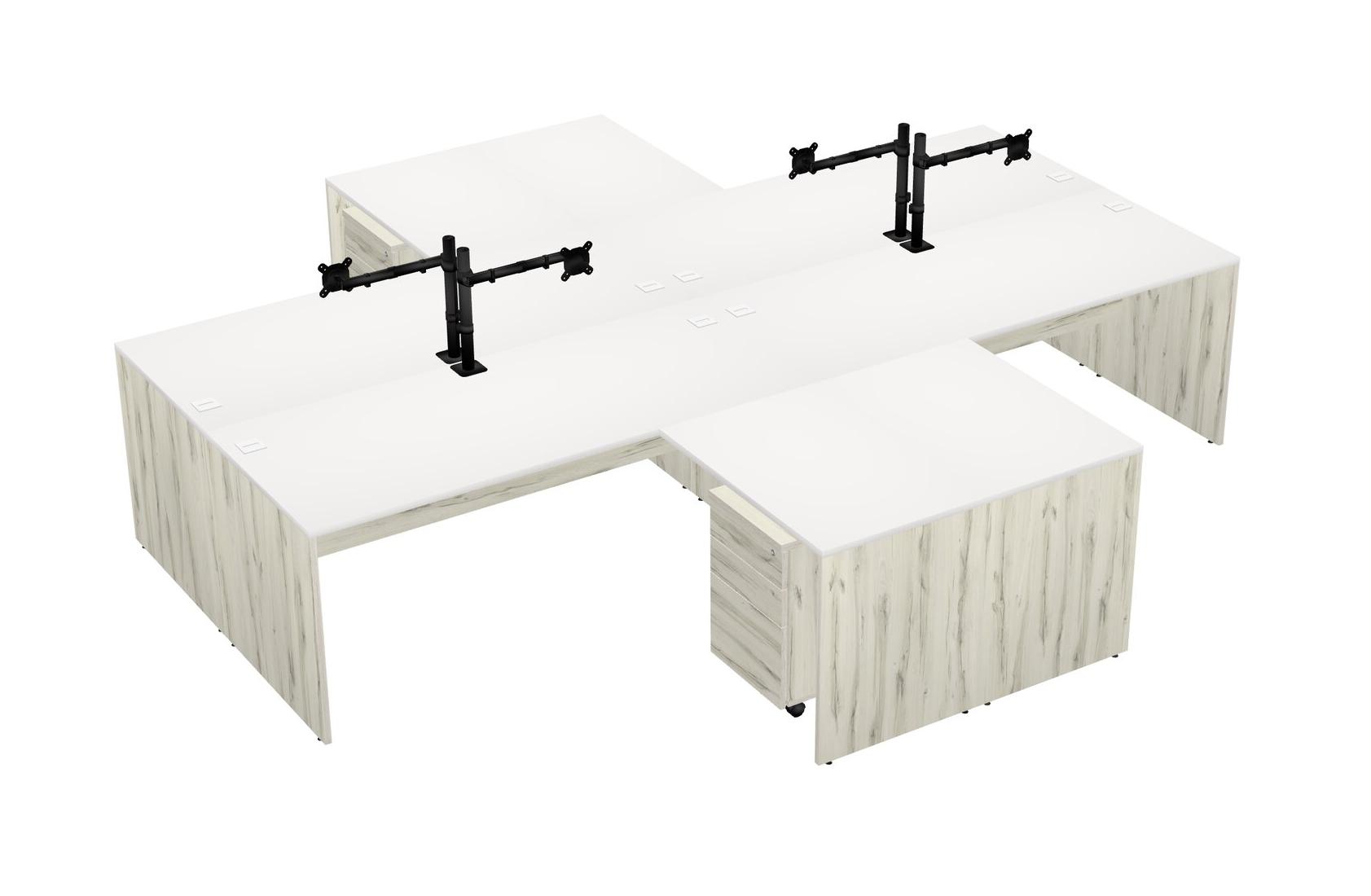 Bureaux Blancs En L Avec Bras D'écran Noir (bras Simple)
