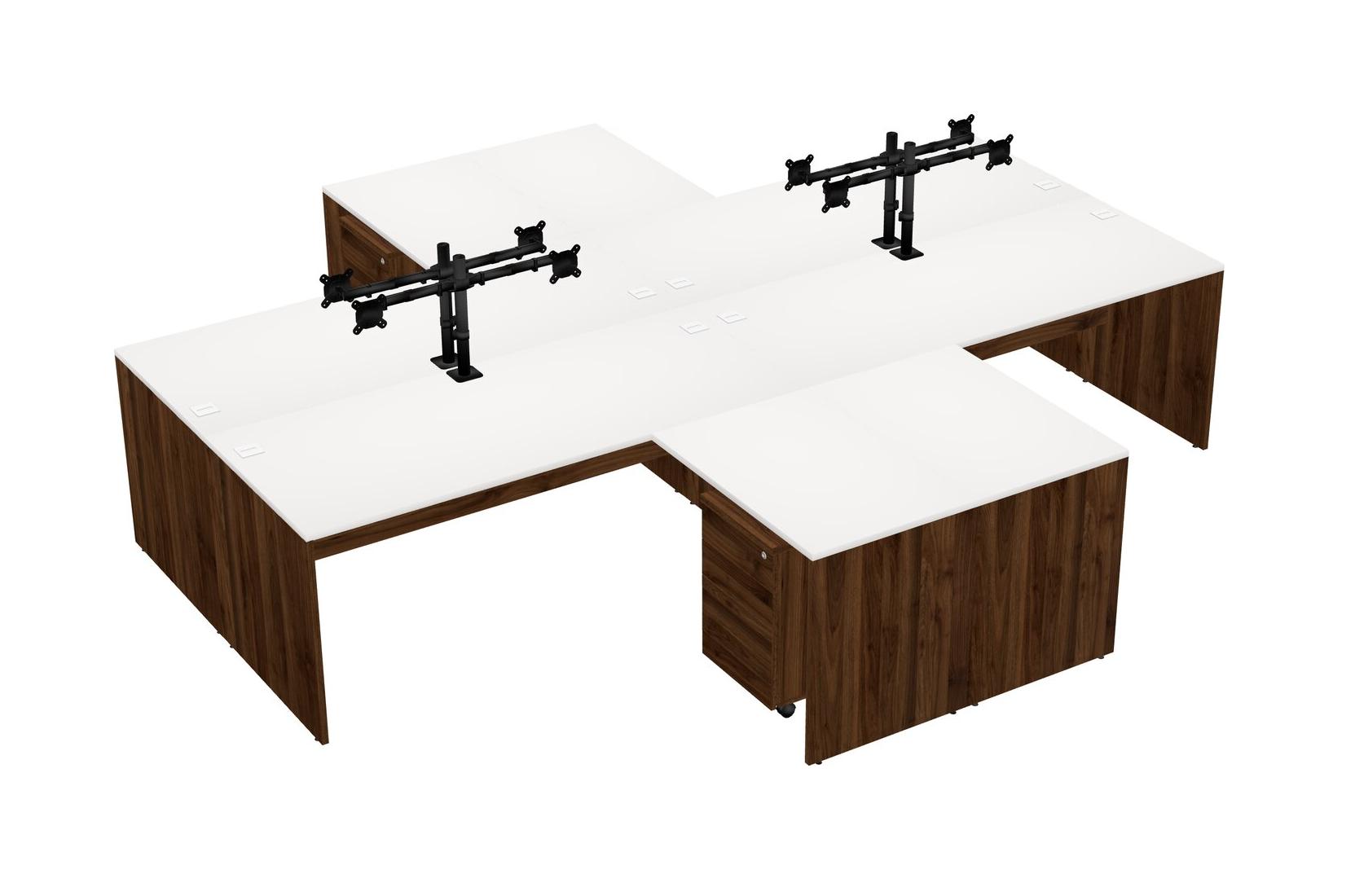 Bureaux Blancs En Forme De L Avec Bras D'écran Noir (bras Doubles)