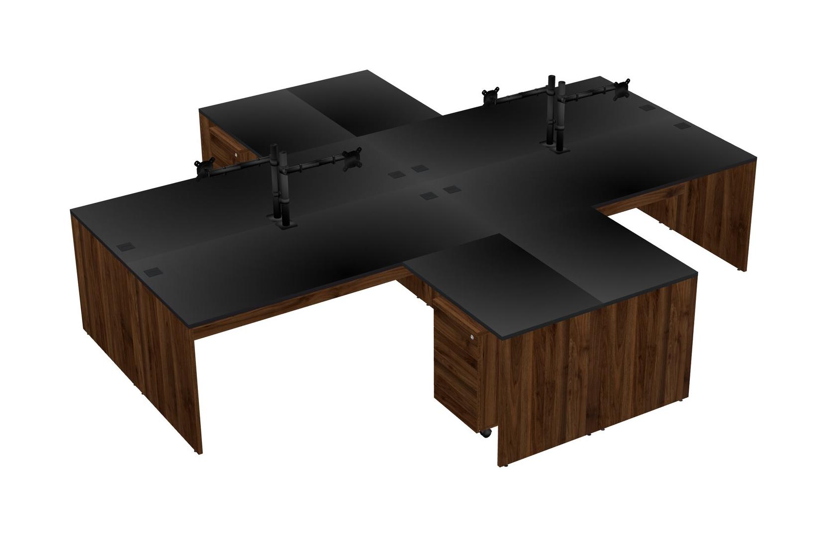 Bureaux Noirs En Forme De L Avec Bras D'écran Noir (bras Simple)