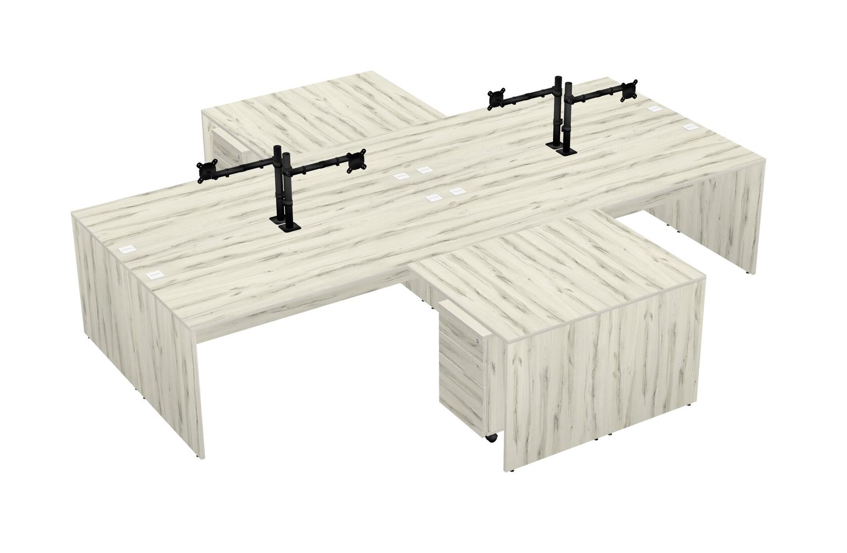 Bureaux Heinne Holz Quad En L Avec Bras D'écran Noir (bras Simple)