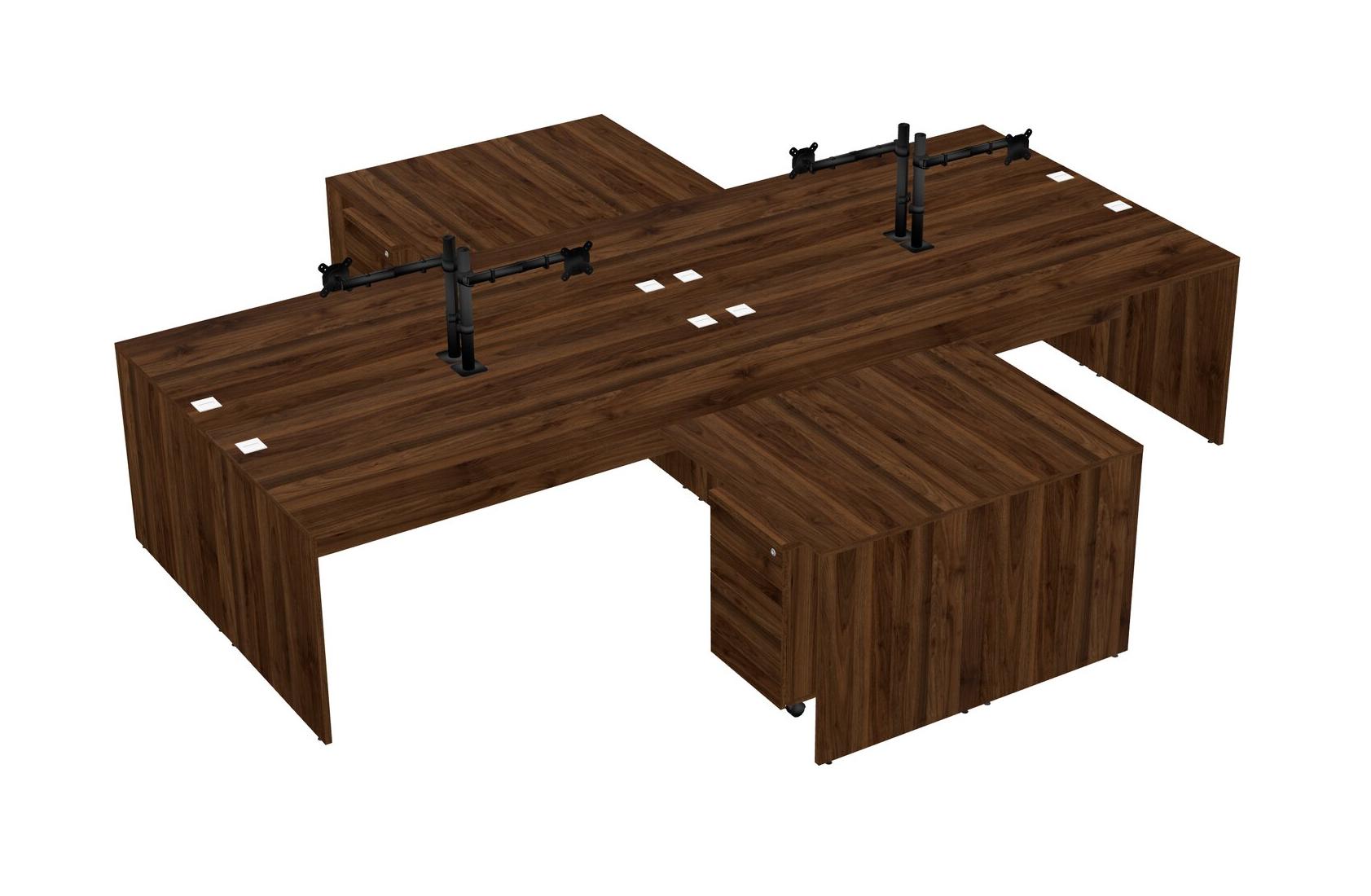 Bureaux De Bureau En L Quadruple En Noyer Columbia Avec Bras D'écran Noir (bras Simple)
