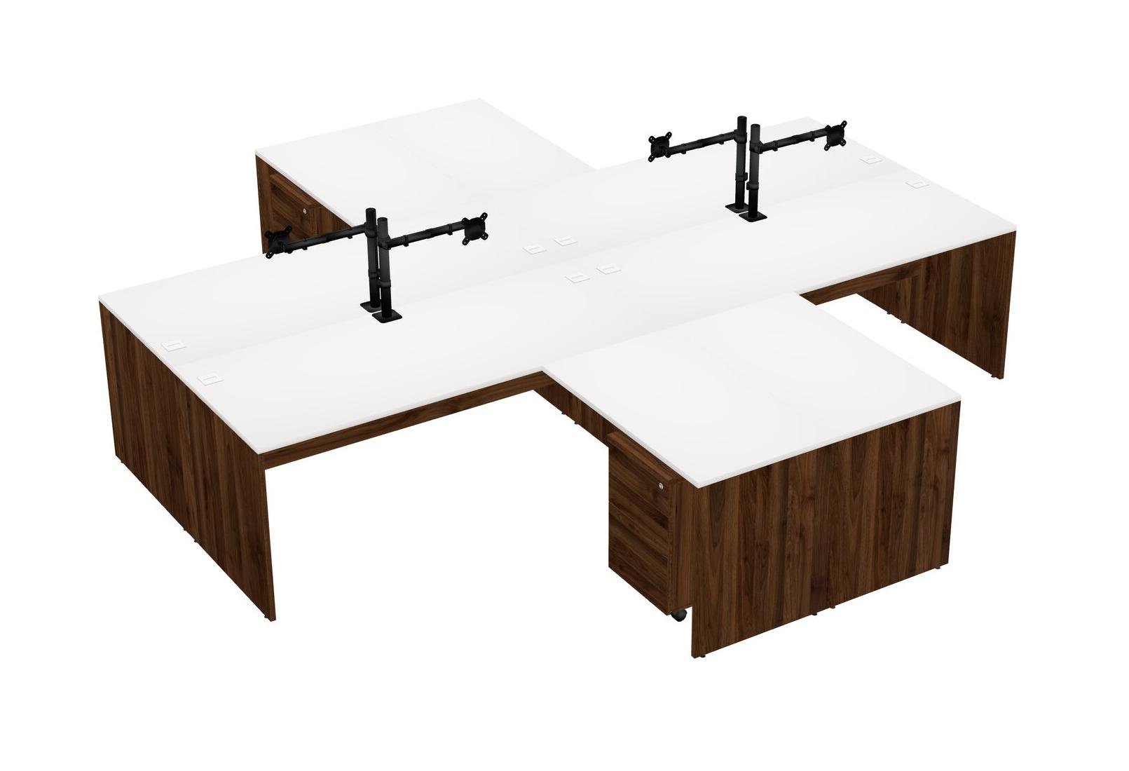 Bureaux Blancs En L Avec Bras D'écran Noir (bras Simple)