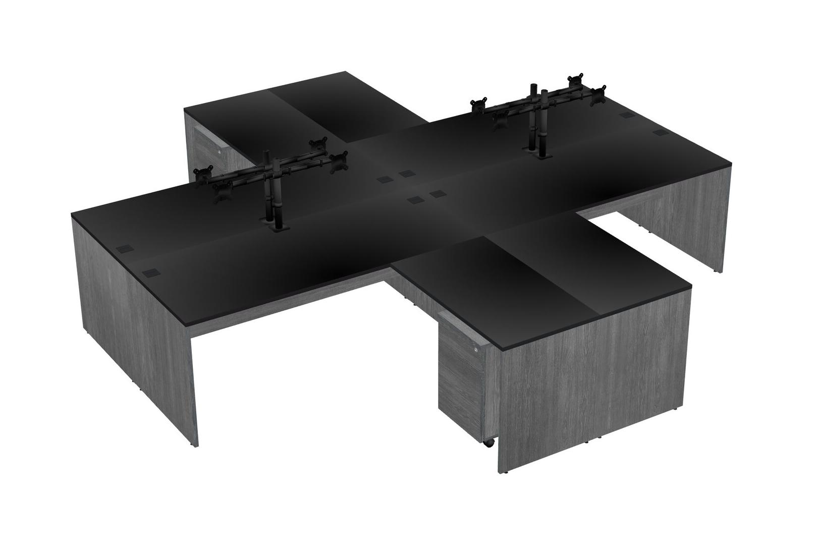 Bureaux Noirs En Forme De L Avec Bras D'écran Noir (bras Doubles)