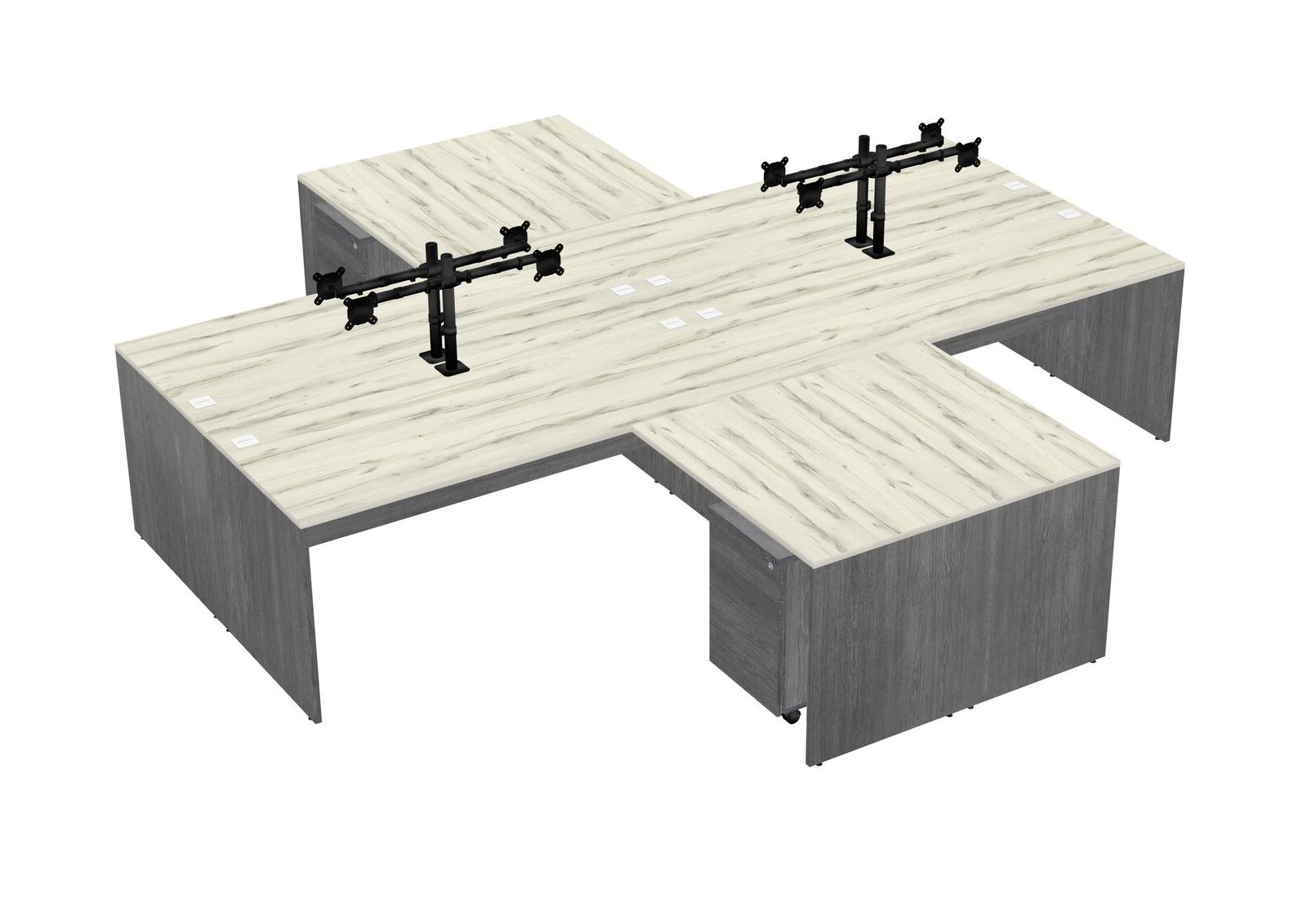 Bureaux Heinne Holz Quad En L Avec Bras D'écran Noir (bras Doubles)