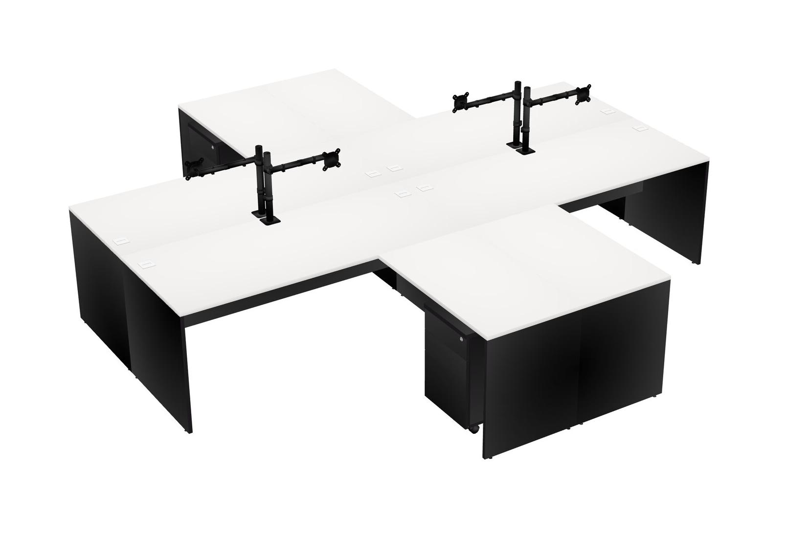 Bureaux Blancs En L Avec Bras D'écran Noir (bras Simple)
