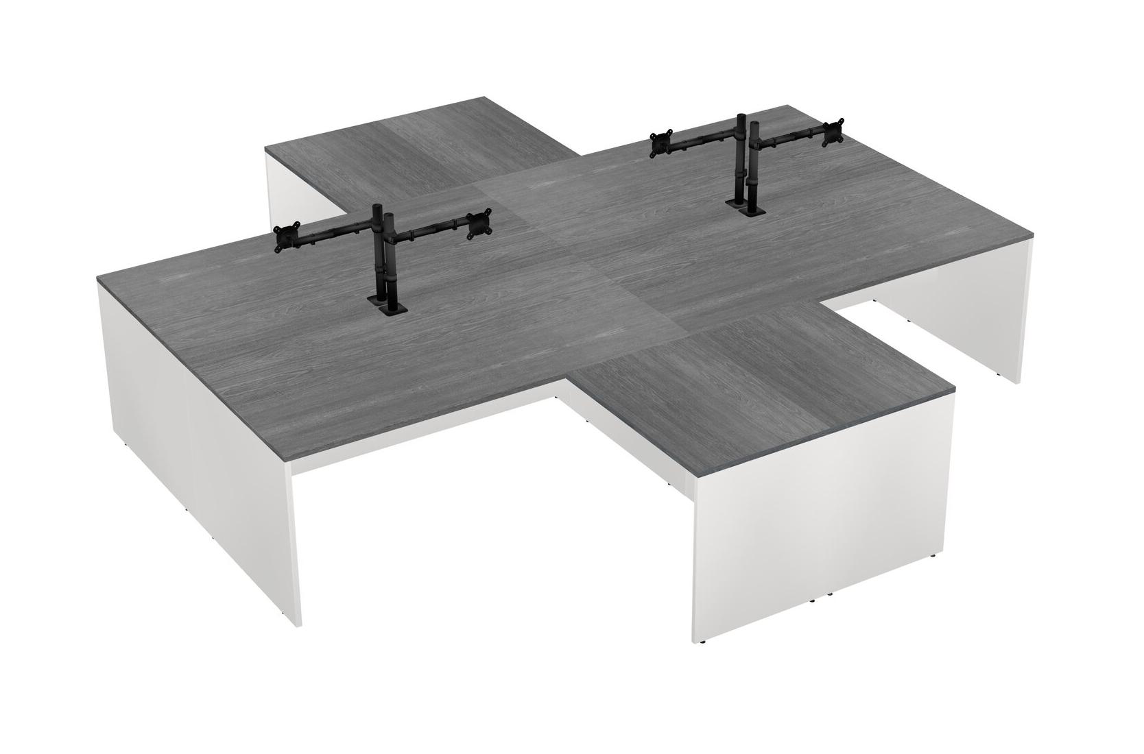 Bureaux Gris En L Avec Bras D'écran Noir (bras Simple)