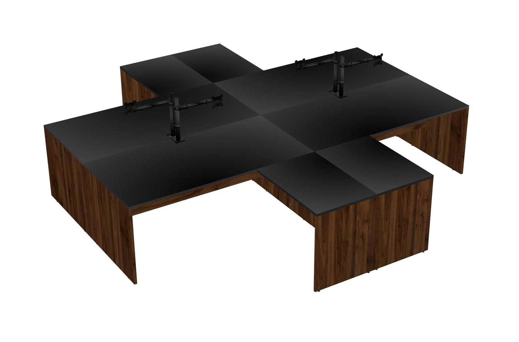 Bureaux Noirs En Forme De L Avec Bras D'écran Noir (bras Simple)