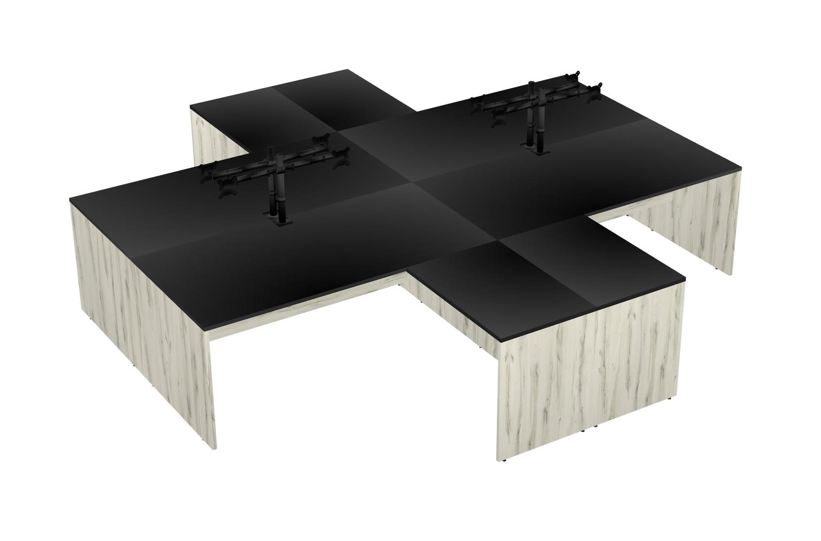 Bureaux Noirs En Forme De L Avec Bras D'écran Noir (bras Doubles)