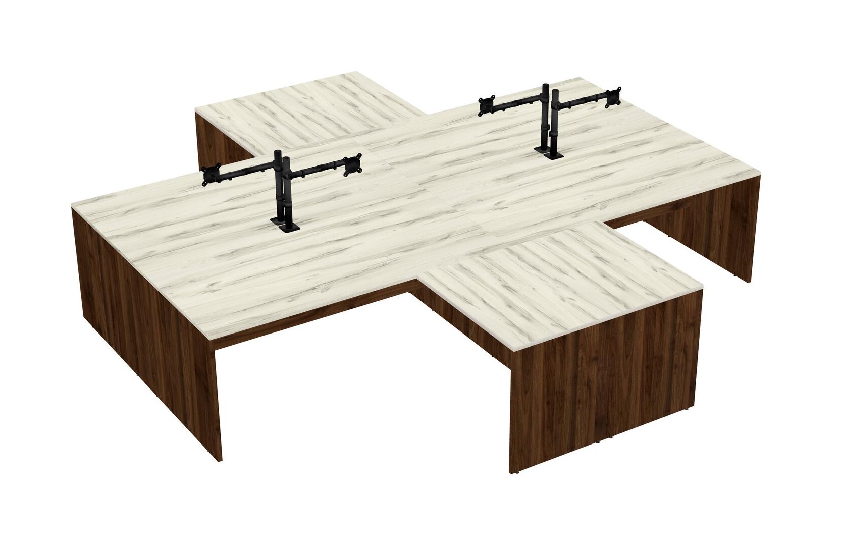 Bureaux Heinne Holz Quad En L Avec Bras D'écran Noir (bras Simple)