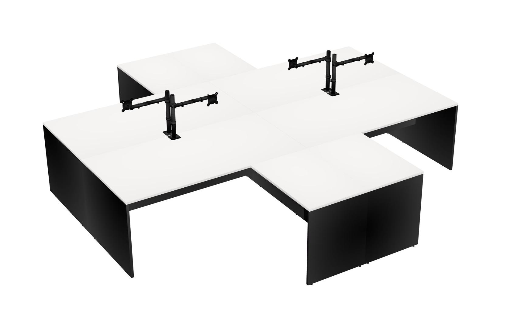 Bureaux Blancs En L Avec Bras D'écran Noir (bras Simple)