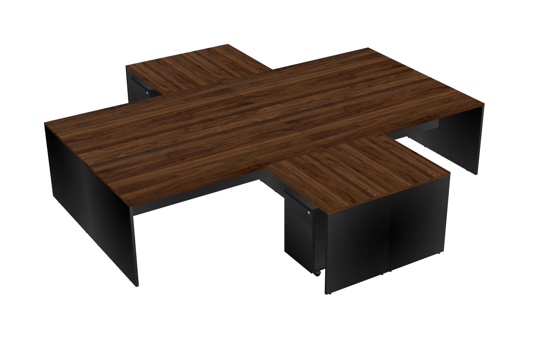 Bureaux De Bureau Quadruples En L En Noyer Columbia
