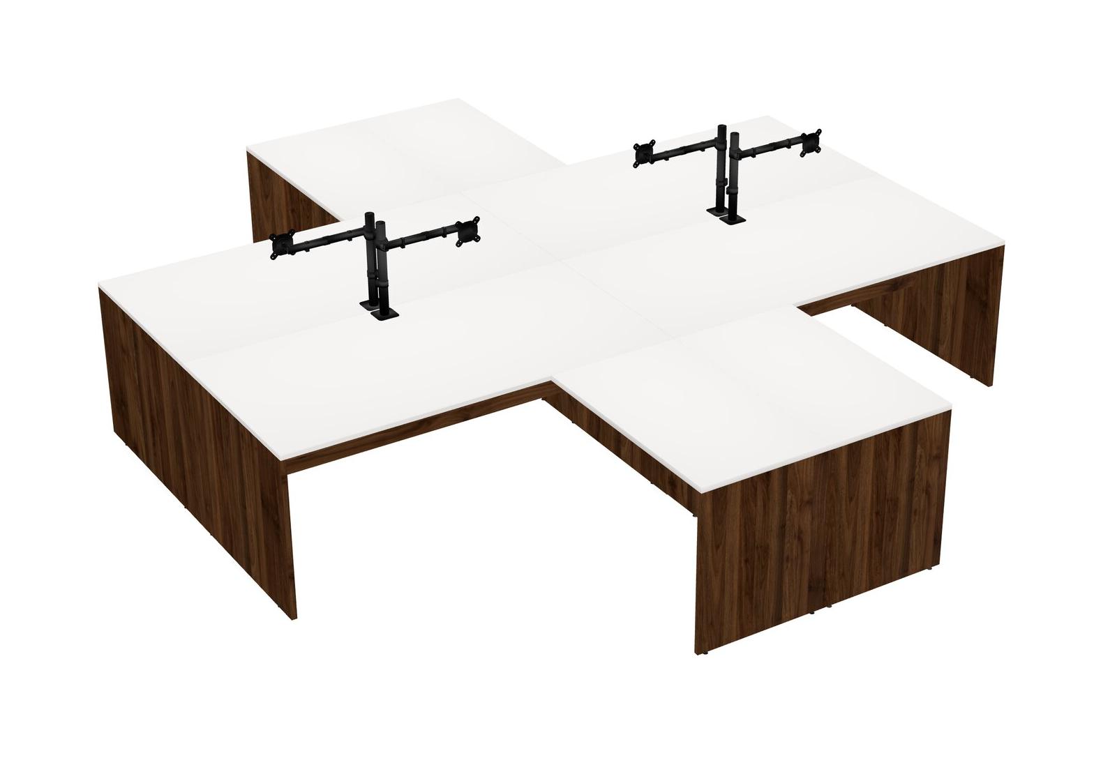 Bureaux Blancs En L Avec Bras D'écran Noir (bras Simple)