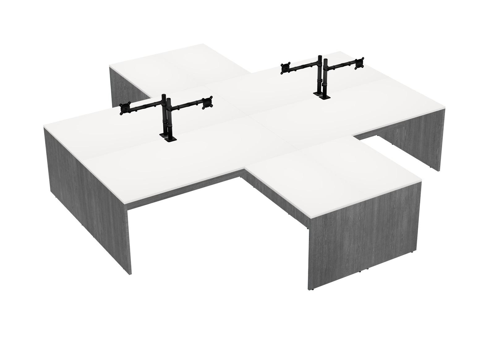Bureaux Blancs En L Avec Bras D'écran Noir (bras Simple)