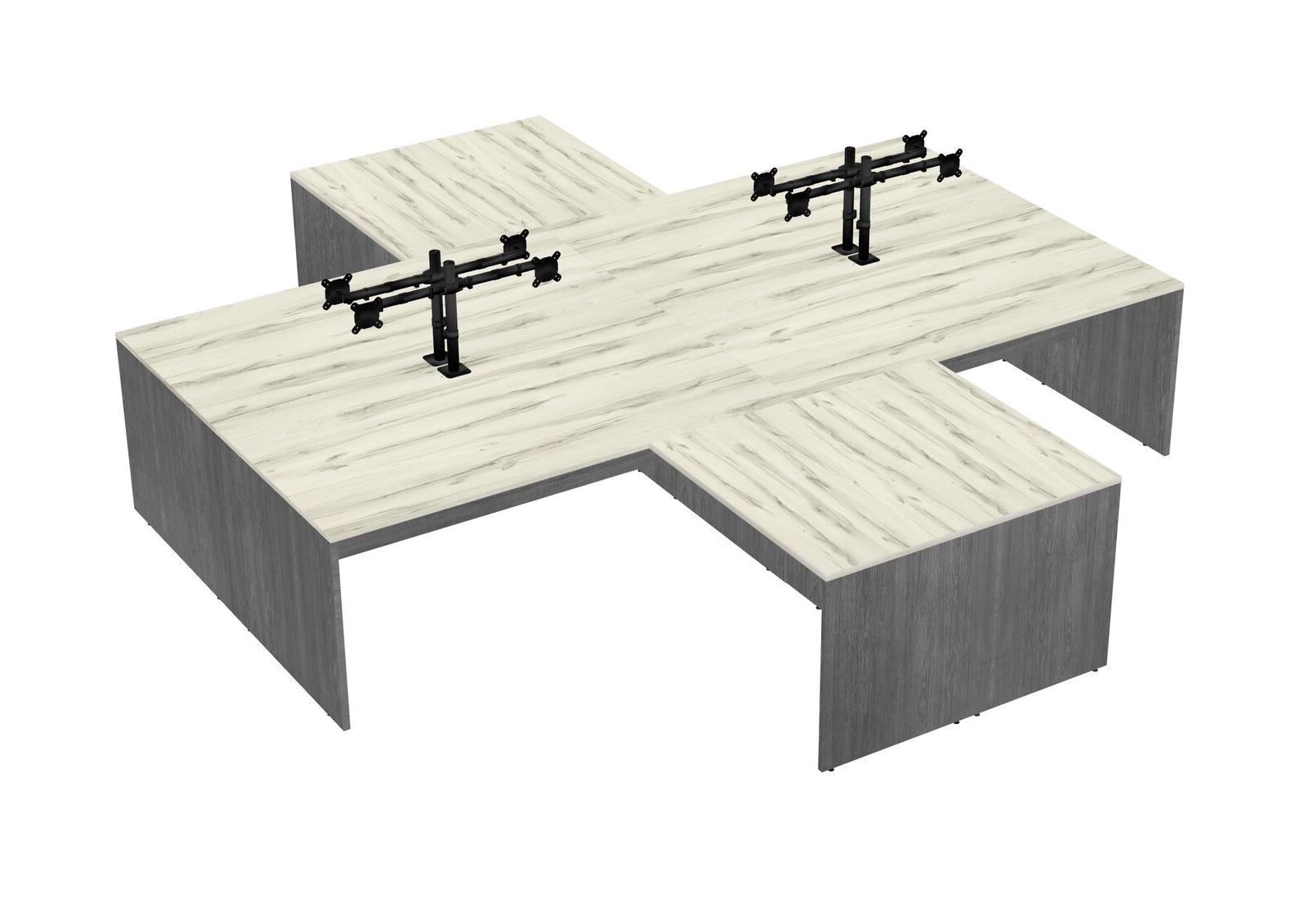 Bureaux Heinne Holz Quad En L Avec Bras D'écran Noir (bras Doubles)