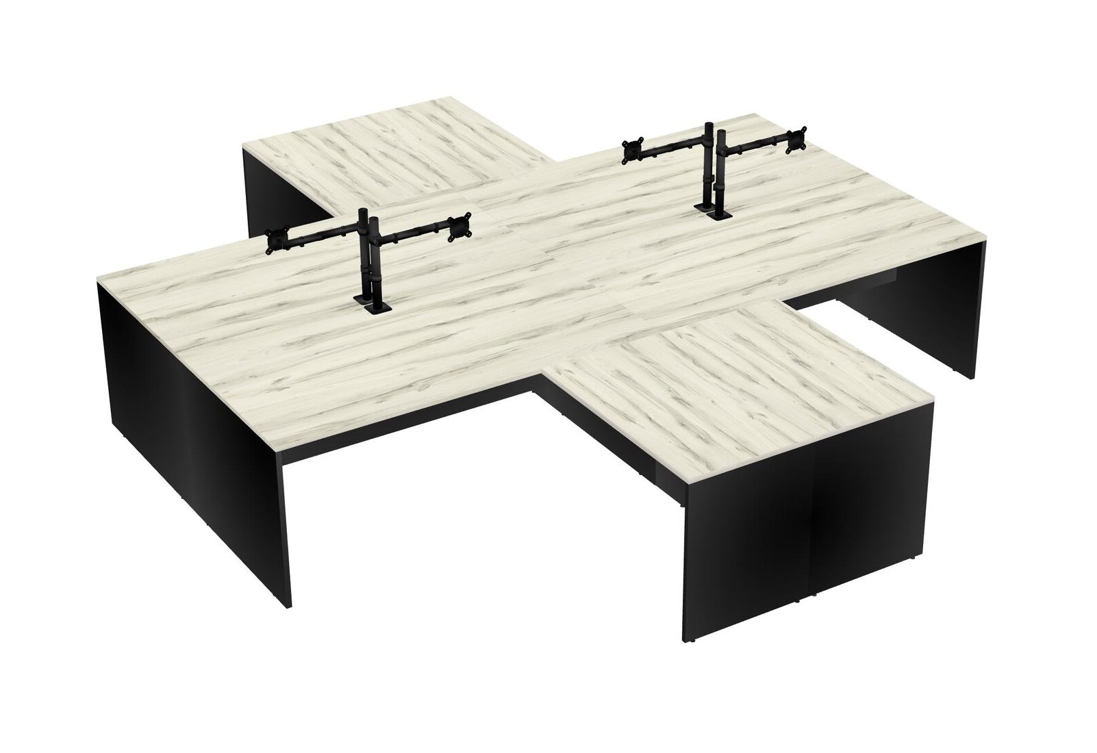 Bureaux Heinne Holz Quad En L Avec Bras D'écran Noir (bras Simple)