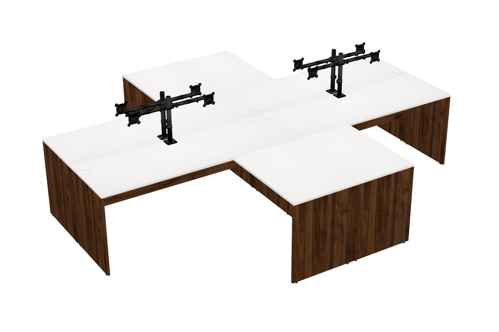 Bureaux Blancs En Forme De L Avec Bras D'écran Noir (bras Doubles)