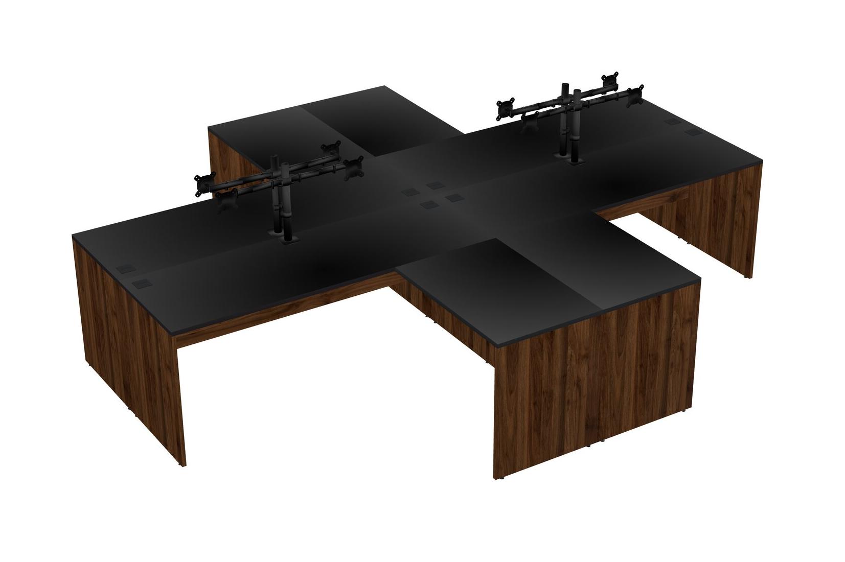 Bureaux Noirs En Forme De L Avec Bras D'écran Noir (bras Doubles)