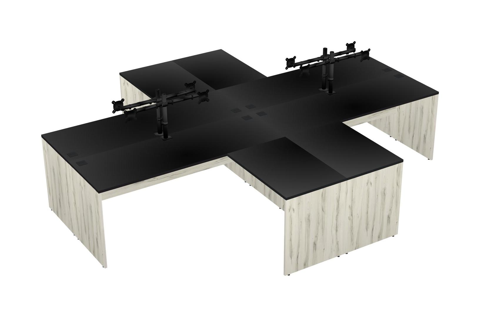 Bureaux Noirs En Forme De L Avec Bras D'écran Noir (bras Doubles)