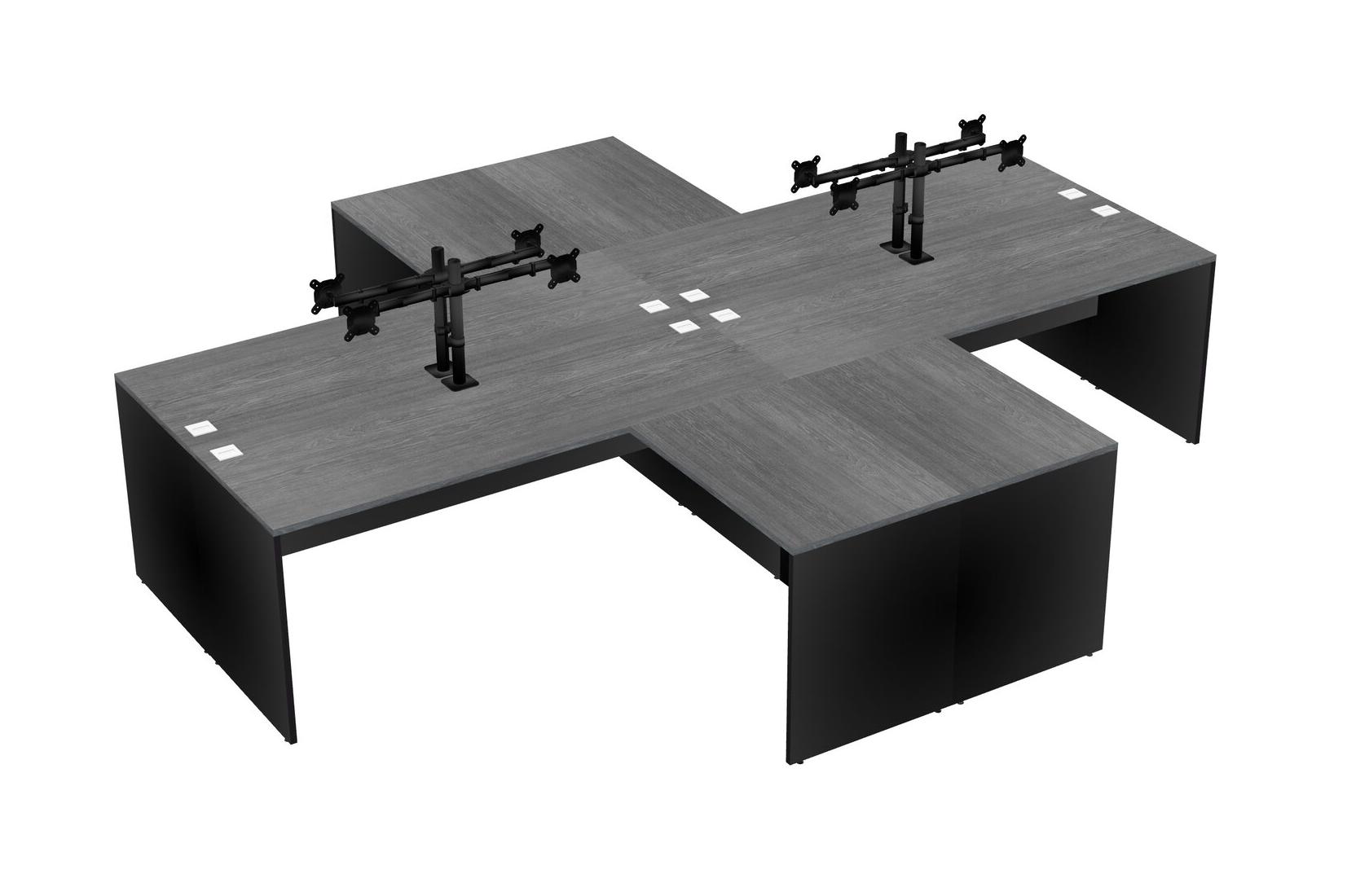 Bureaux Gris En Forme De L Avec Bras D'écran Noir (bras Doubles)
