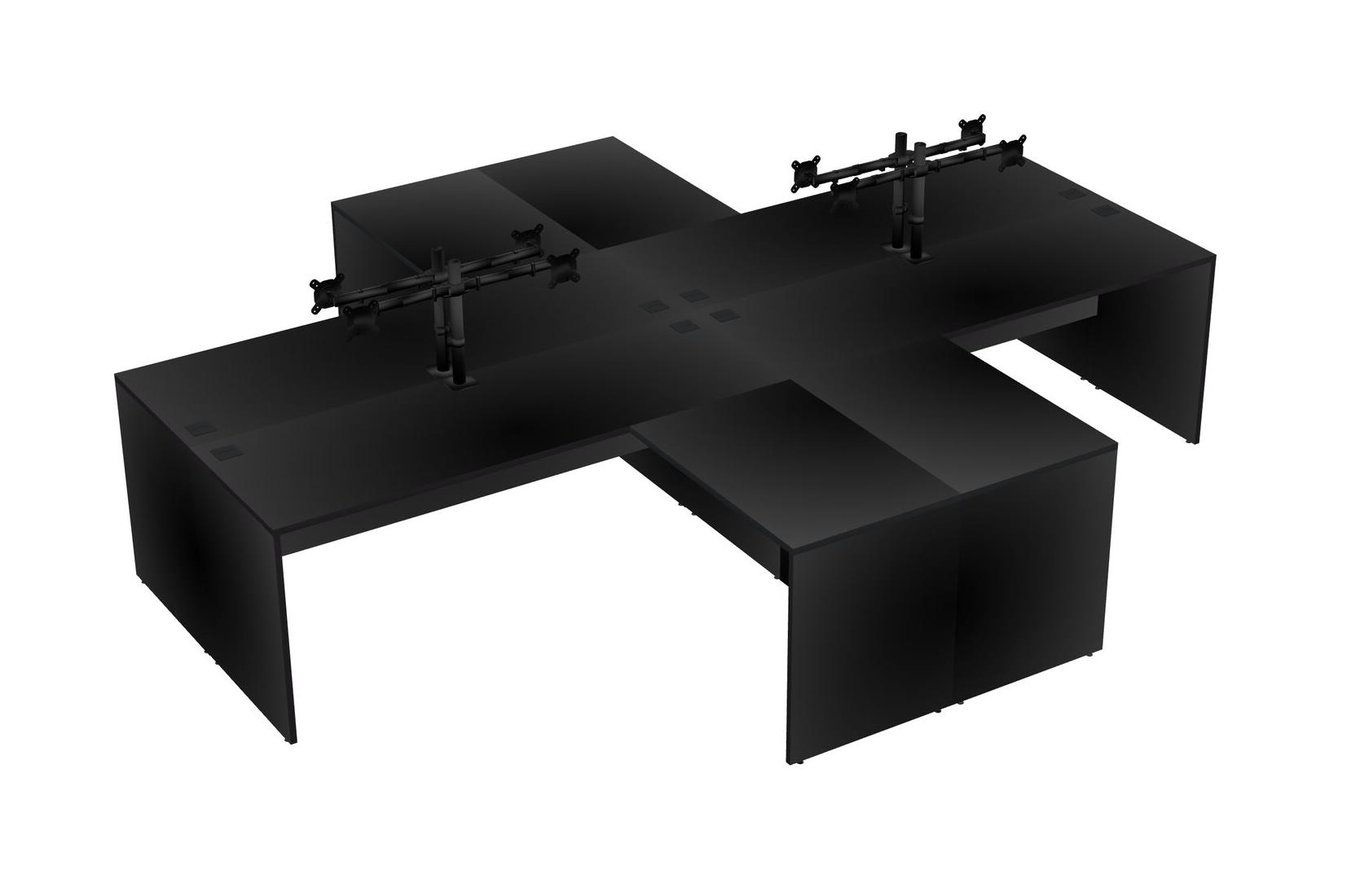 Bureaux Noirs En Forme De L Avec Bras D'écran Noir (bras Doubles)