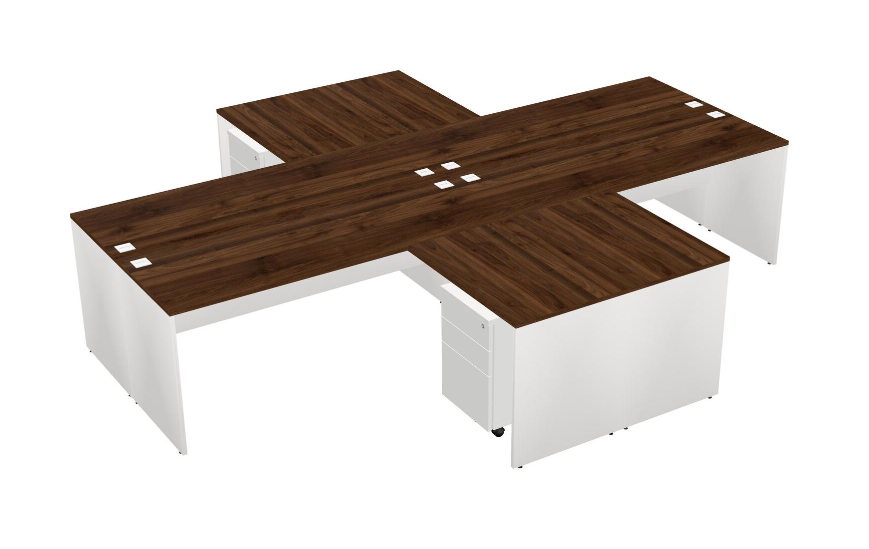 Bureaux De Bureau Quadruples En L En Noyer Columbia
