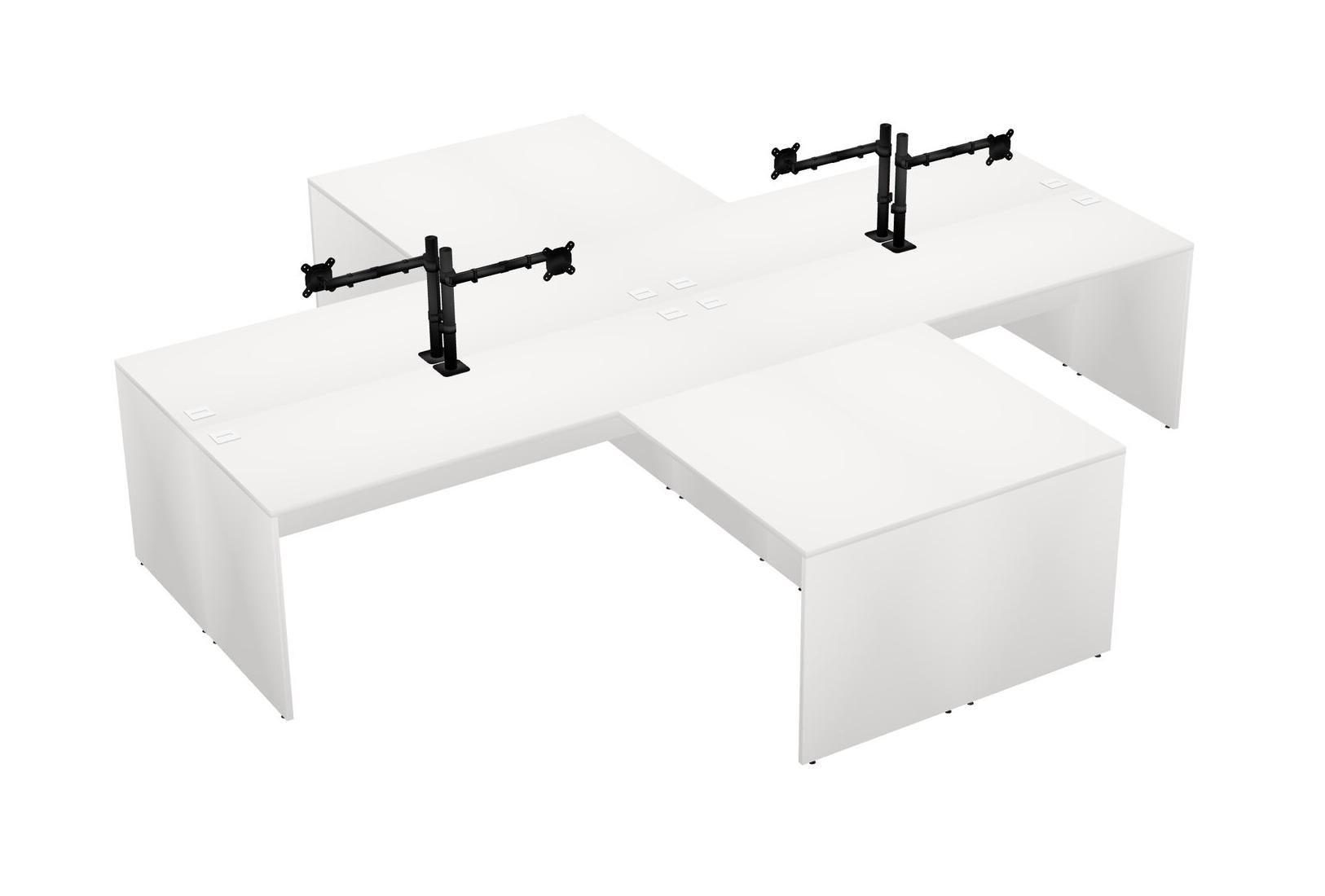 Bureaux Blancs En L Avec Bras D'écran Noir (bras Simple)