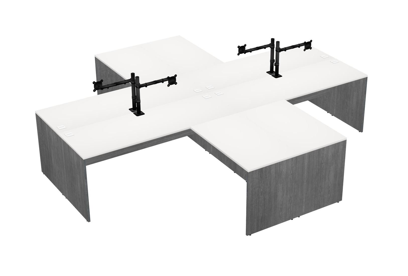 Bureaux Blancs En L Avec Bras D'écran Noir (bras Simple)