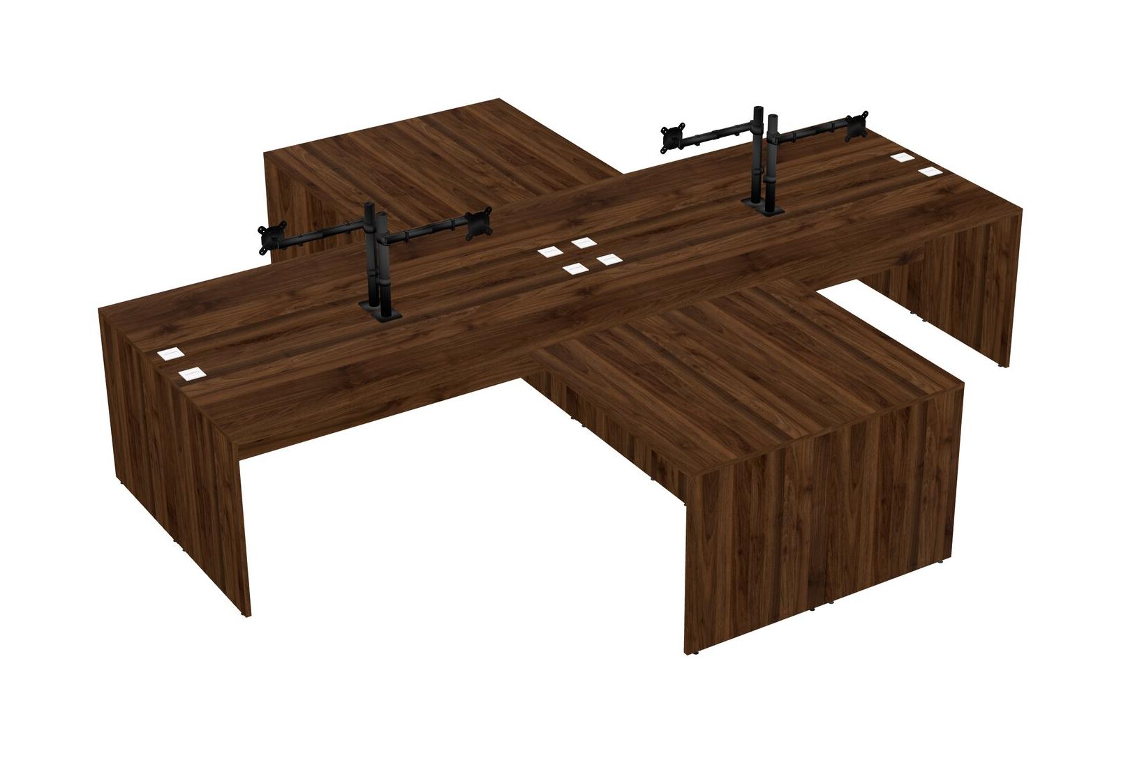 Bureaux De Bureau En L Quadruple En Noyer Columbia Avec Bras D'écran Noir (bras Simple)