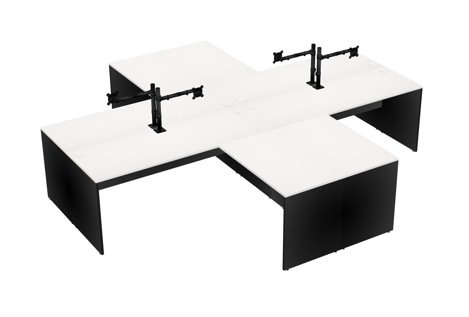 Bureaux Blancs En L Avec Bras D'écran Noir (bras Simple)