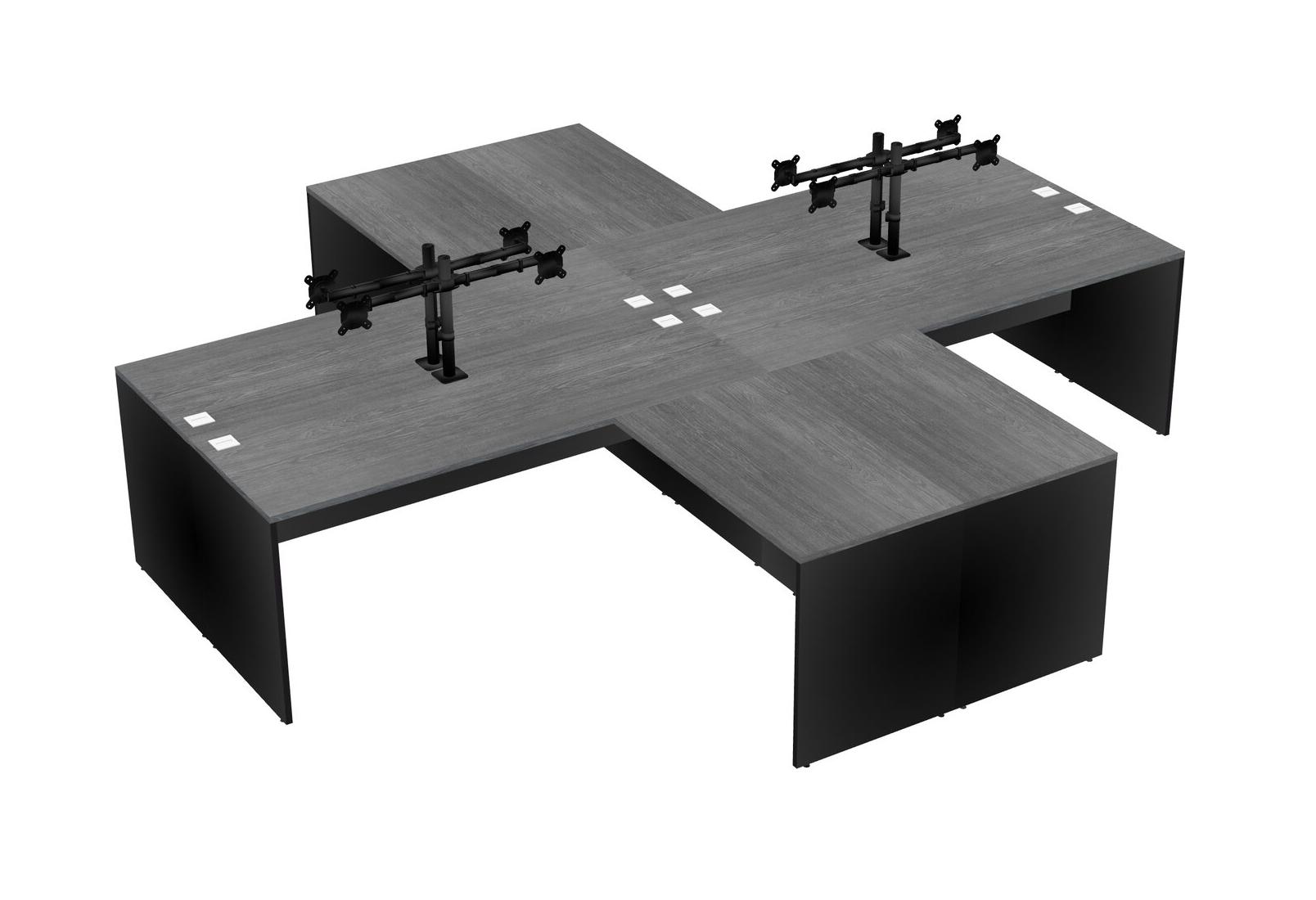 Bureaux Gris En Forme De L Avec Bras D'écran Noir (bras Doubles)