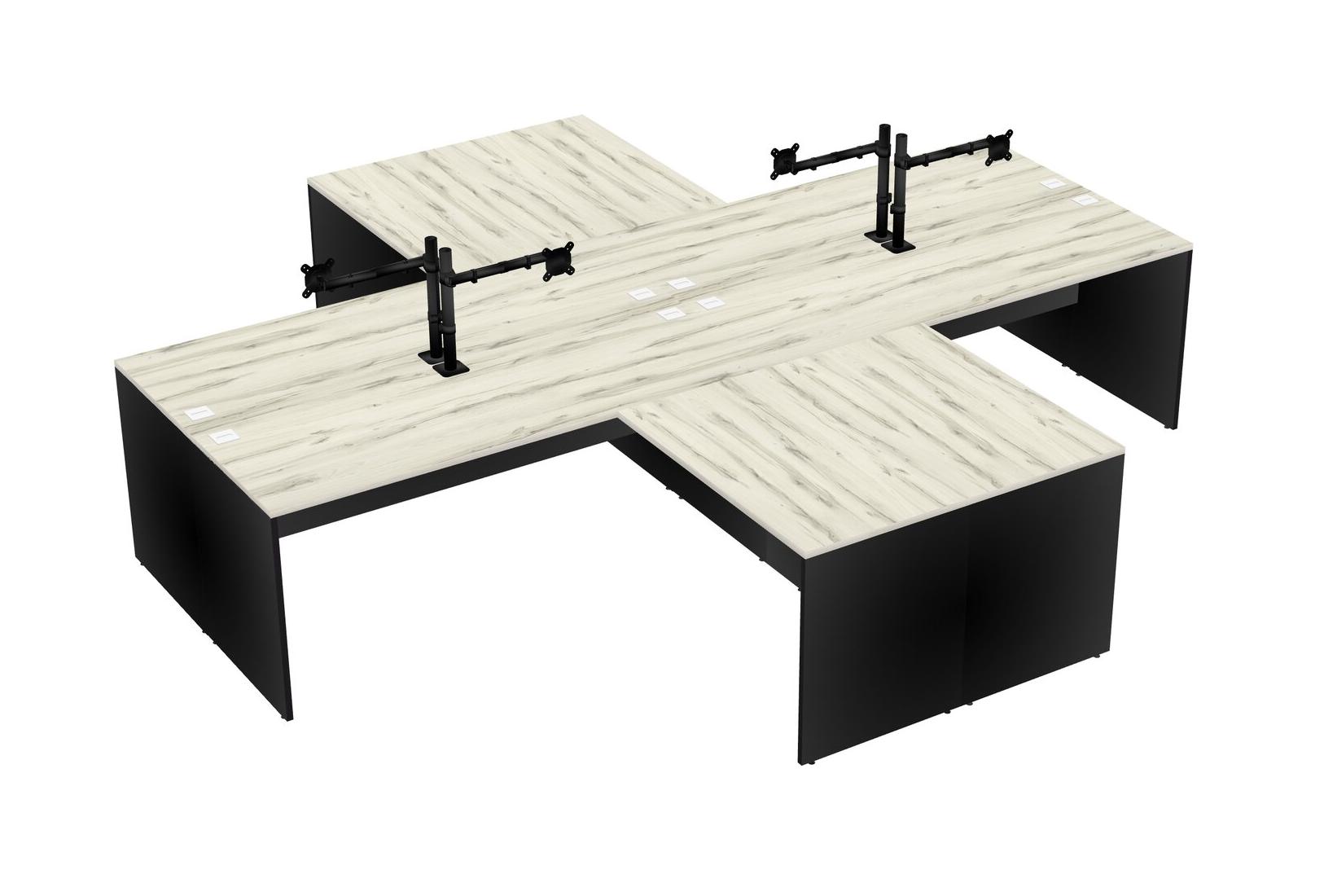 Bureaux Heinne Holz Quad En L Avec Bras D'écran Noir (bras Simple)