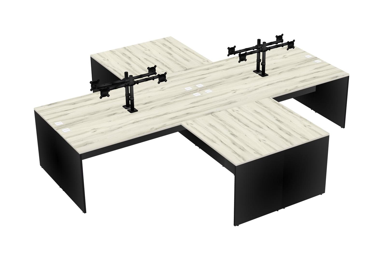 Bureaux Heinne Holz Quad En L Avec Bras D'écran Noir (bras Doubles)