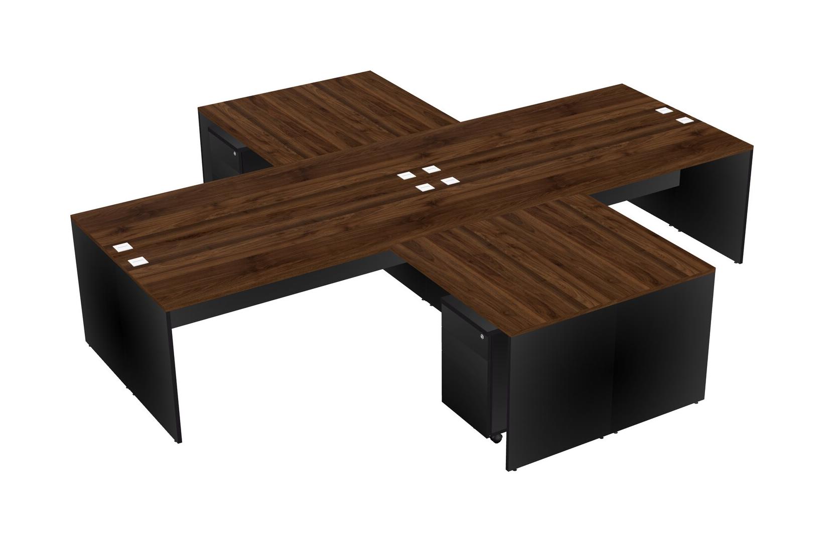 Bureaux De Bureau Quadruples En L En Noyer Columbia